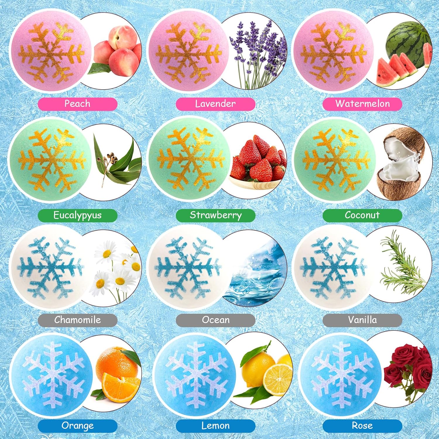 12 Different Scents – Each bath bomb set contains different colors. When we put bath bombs really create a colorful and wonderful world for our kids bath. They moisturize to leave your skin soft & silky, cleanse to make your body fresh & light, and soothe to let you feel refreshed.