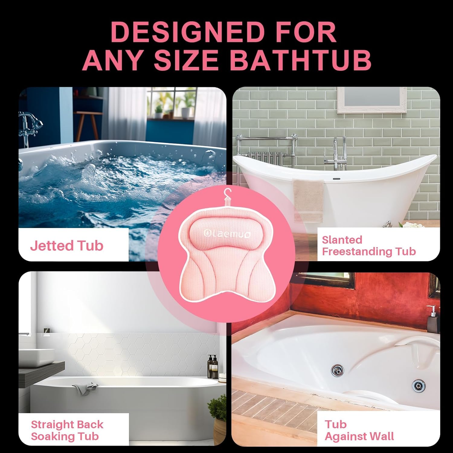 Bath Pillows for Tub, Bath Pillow Luxury Bathtub Pillow, Comfy Bath Tub Pillow for Bathtub for Head and Neck, Bathtub Neck Pillow with Strong Suction Cups for Tub, Bathtub Accessories-Pink