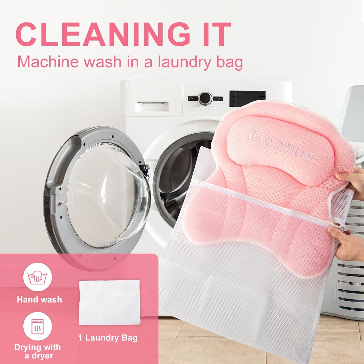 【Machine Wash】The bath pillow is very easy to clean, we will give you a free laundry bag for you to clean the bath pillow after use, you can choose to machine wash or hand wash. There is a hook on the bathtub pillow, you can use the hook to hang it in a ventilated place after washing because its material has good breathability and the shower pillow will dry quickly