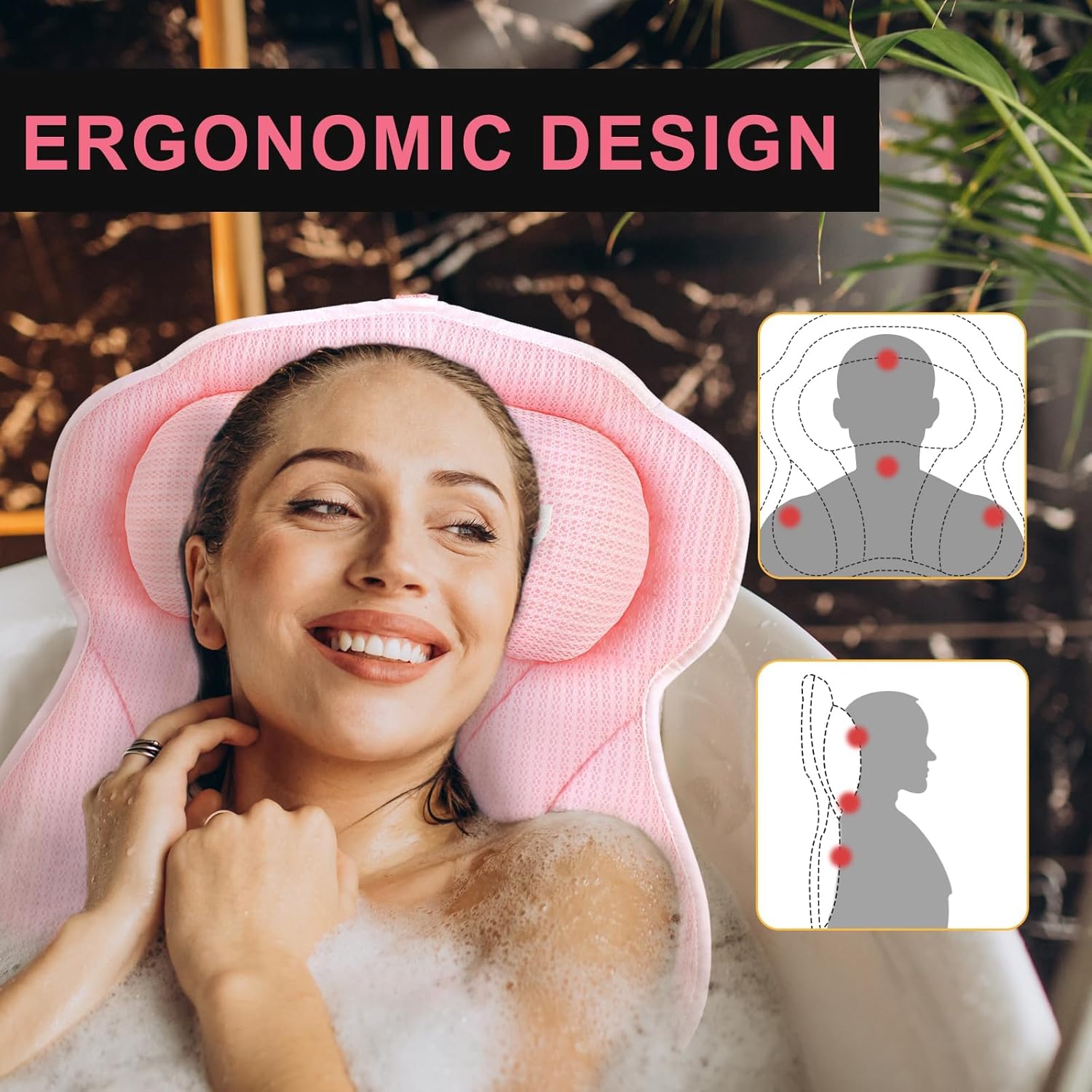 Bath Pillows for Tub, Bath Pillow Luxury Bathtub Pillow, Comfy Bath Tub Pillow for Bathtub for Head and Neck, Bathtub Neck Pillow with Strong Suction Cups for Tub, Bathtub Accessories-Pink
