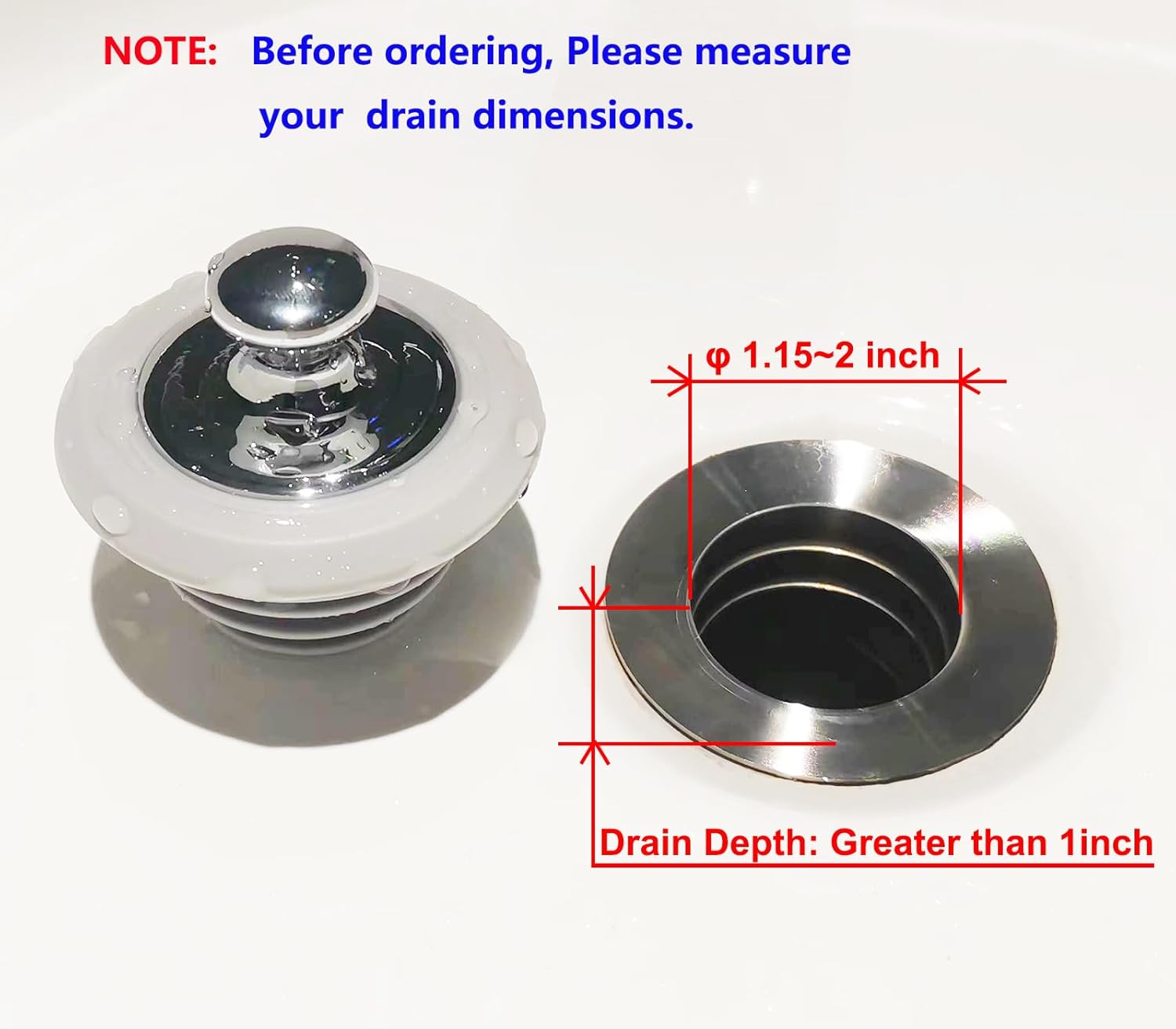 Versatile: It is suitable for most bathtubs and drains (1.15 inch~2.0 inch inner diameter,Drain Depth:Greater than 1 inch), [Note:Does not fit at all Size Drain . Please be sure to measure the Tub Drain before ordering].