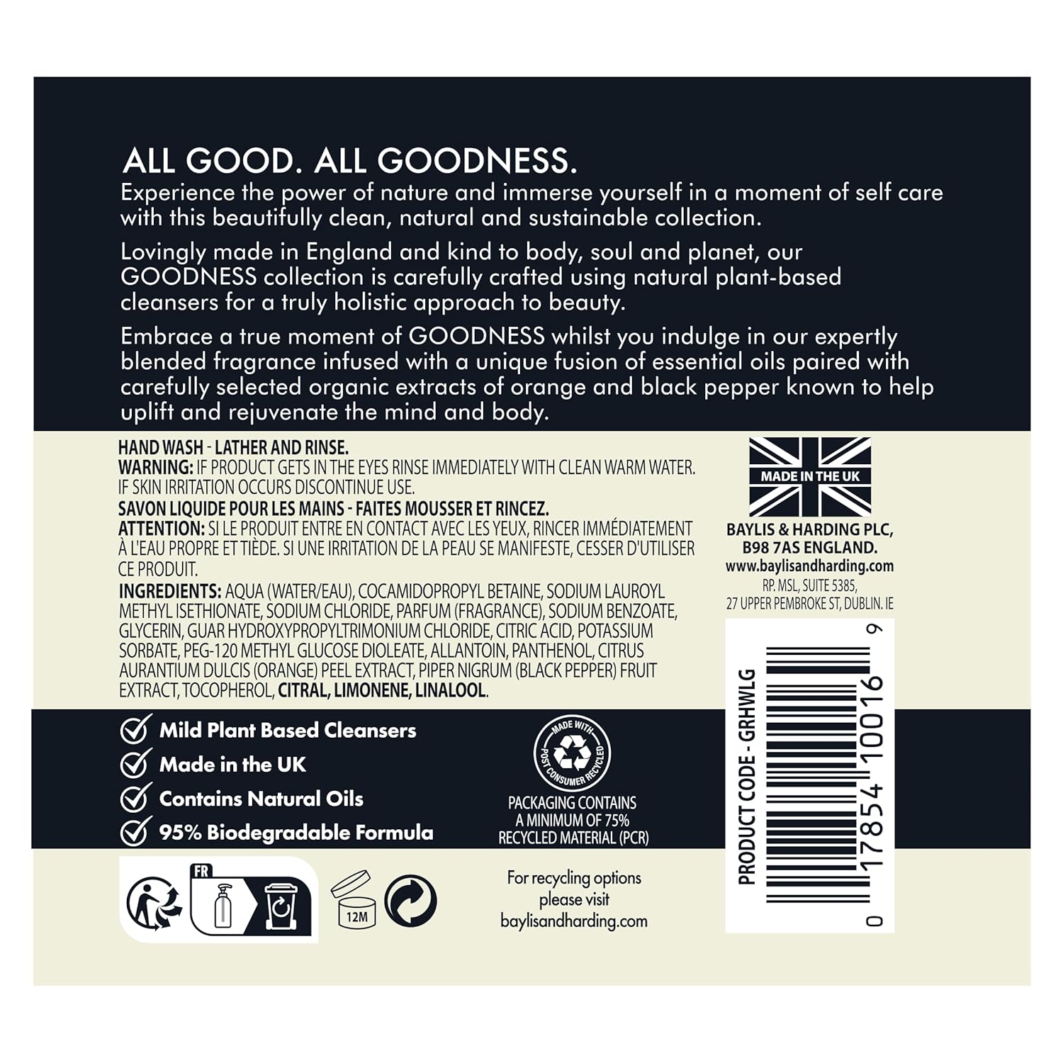 Baylis & Harding Liquid Hand Soap Wash with Dispenser, Goodness, Lemongrass & Ginger, 16.9oz/500ml
