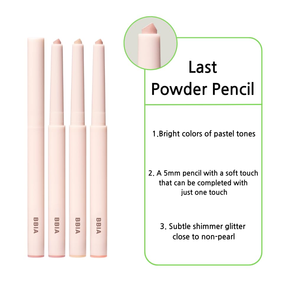 BBIA Last Powder Pencil 3 Colors – Shimmer Glitter Stick Eyeshadow Eyeliner, Under Eye Highlighter Stick Smooth Long-Lasting Creamy Crayon Eye Shadow Liner Pencil Korean Eye Makeup (03 PEACH MILK)