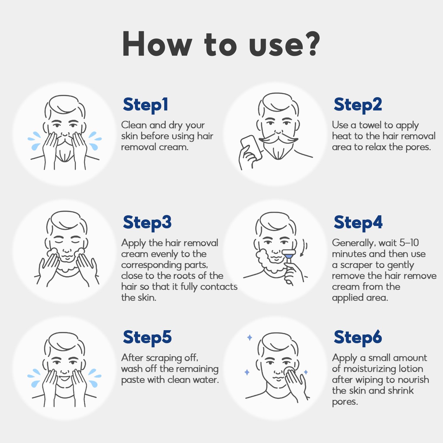 The steps to use hair removal cream are as follows: