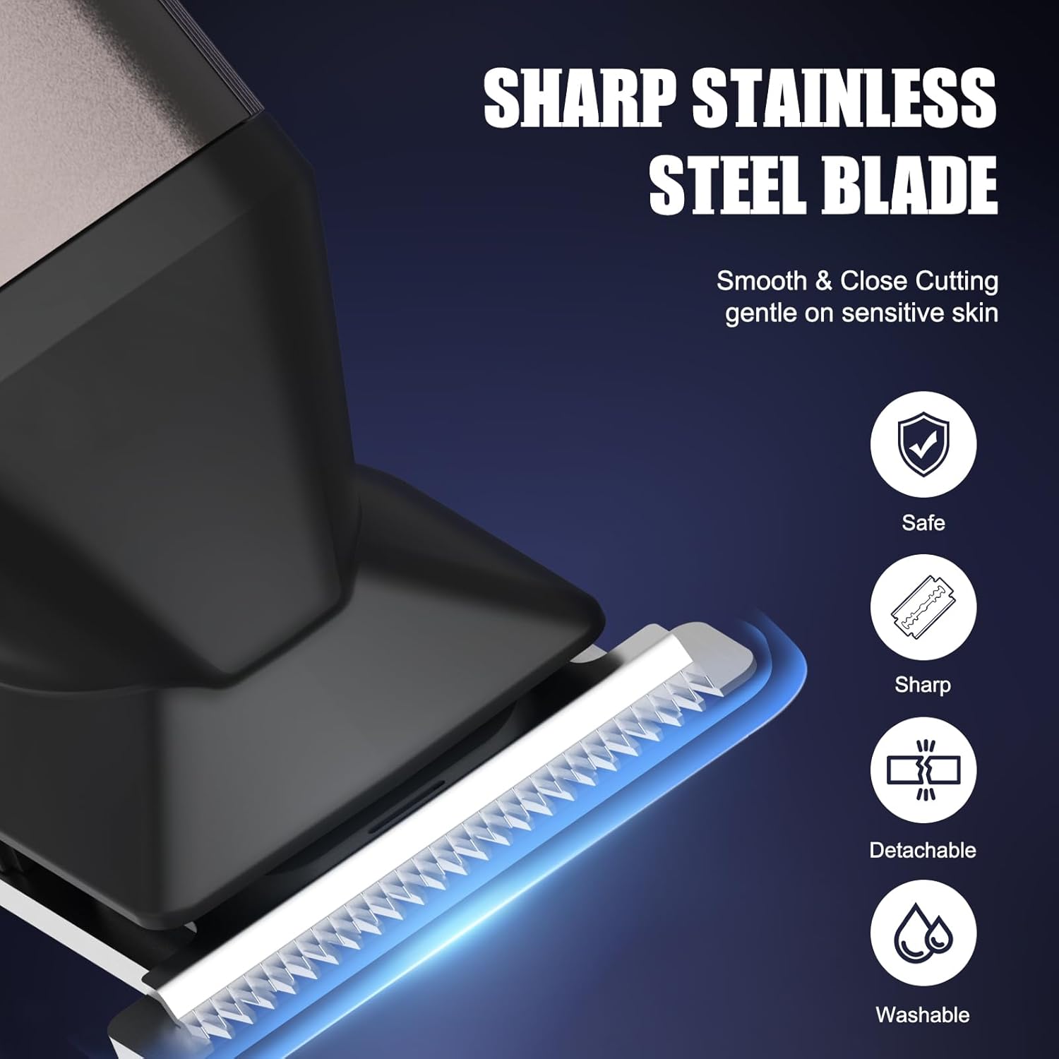 [100% waterproof & easy to clean] – The trimmer is easy to clean and fully washable because of its IPX6 waterproof design. All attachments is detachable, use the included brush to clean the blade first after shaving, and then rinse it under running water for quick cleaning.