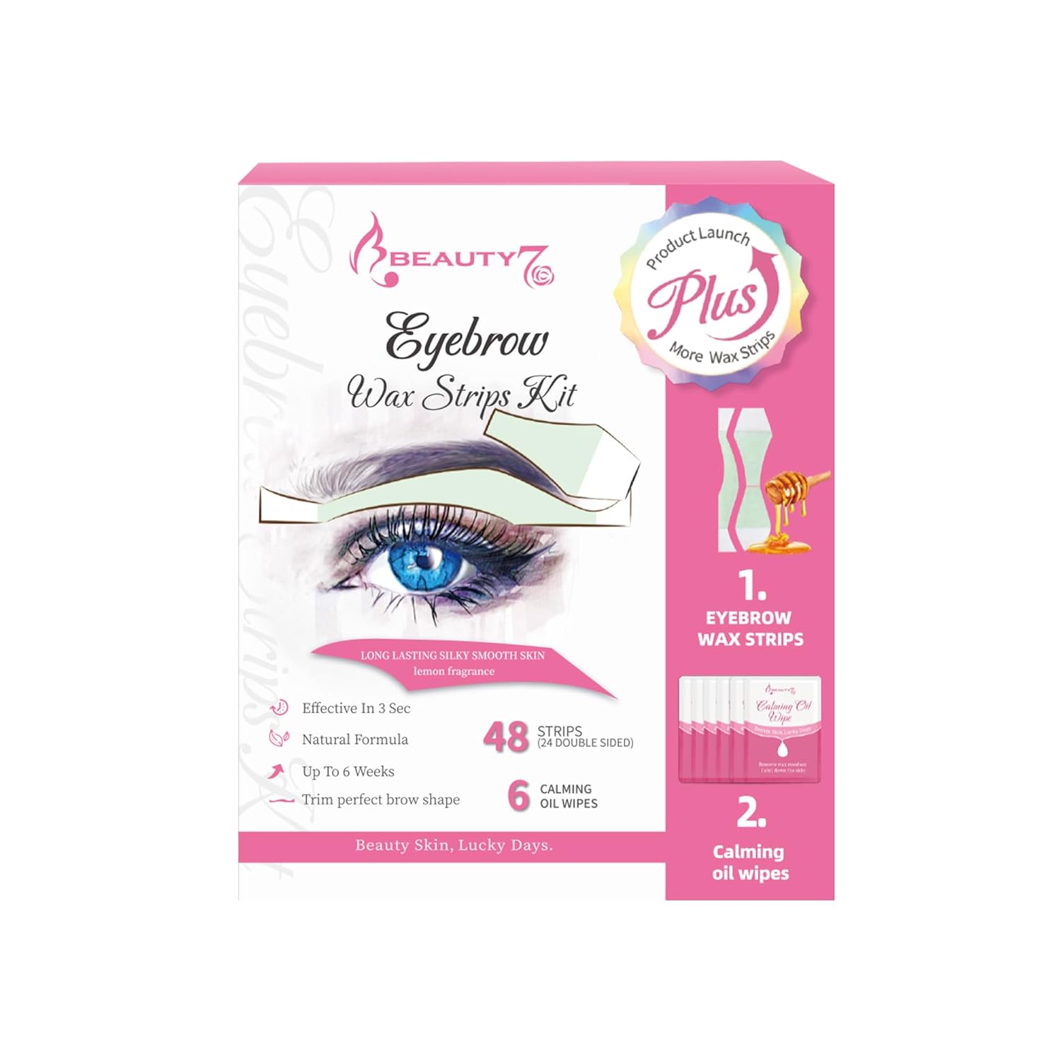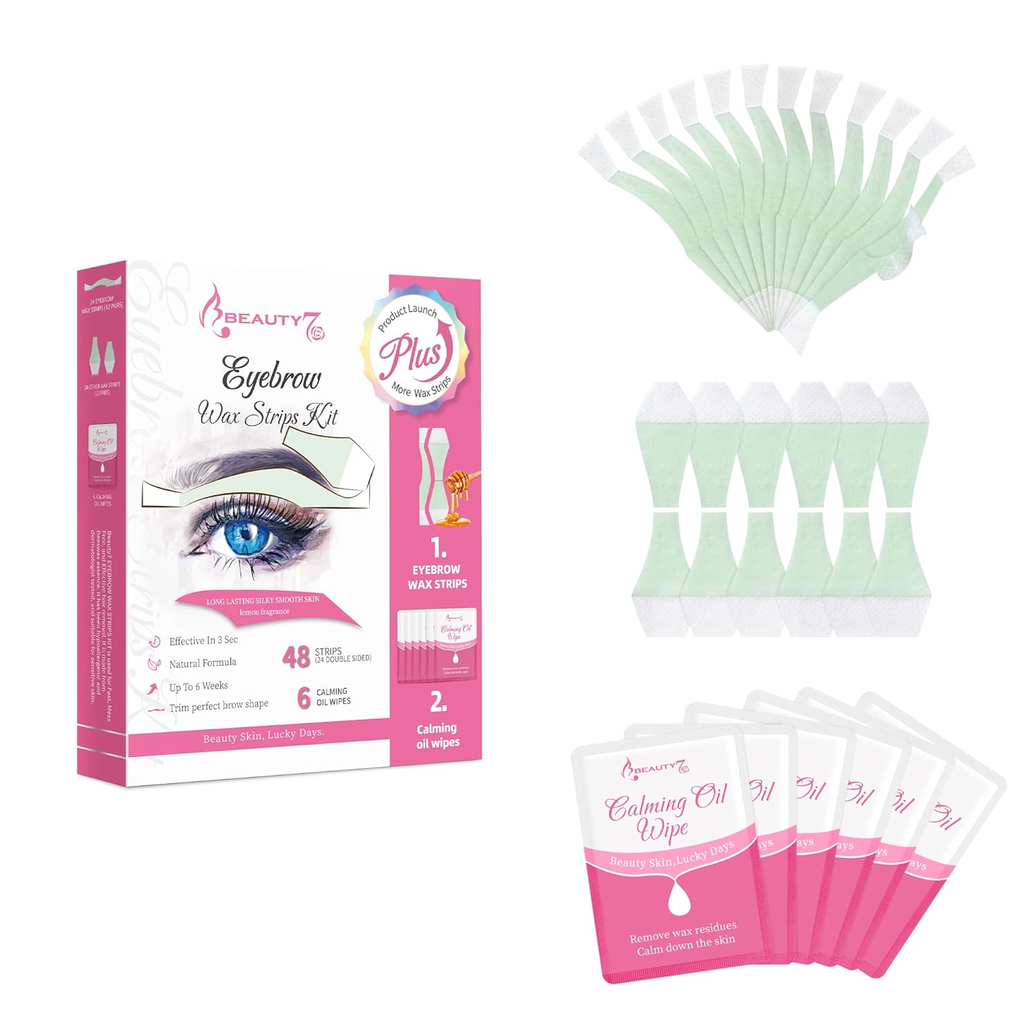 Beauty7 Eyebrow Wax Strips Kit Plus Volum Eyebrow Waxing Kit Facial Wax Strips Hair Removal Eyebrow Shaper at Home Waxing 48 Strips 6 Calming Oil Wipes for Sensitive All Skin Types Women