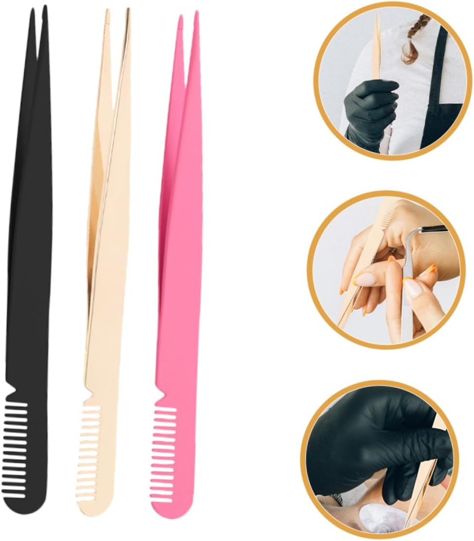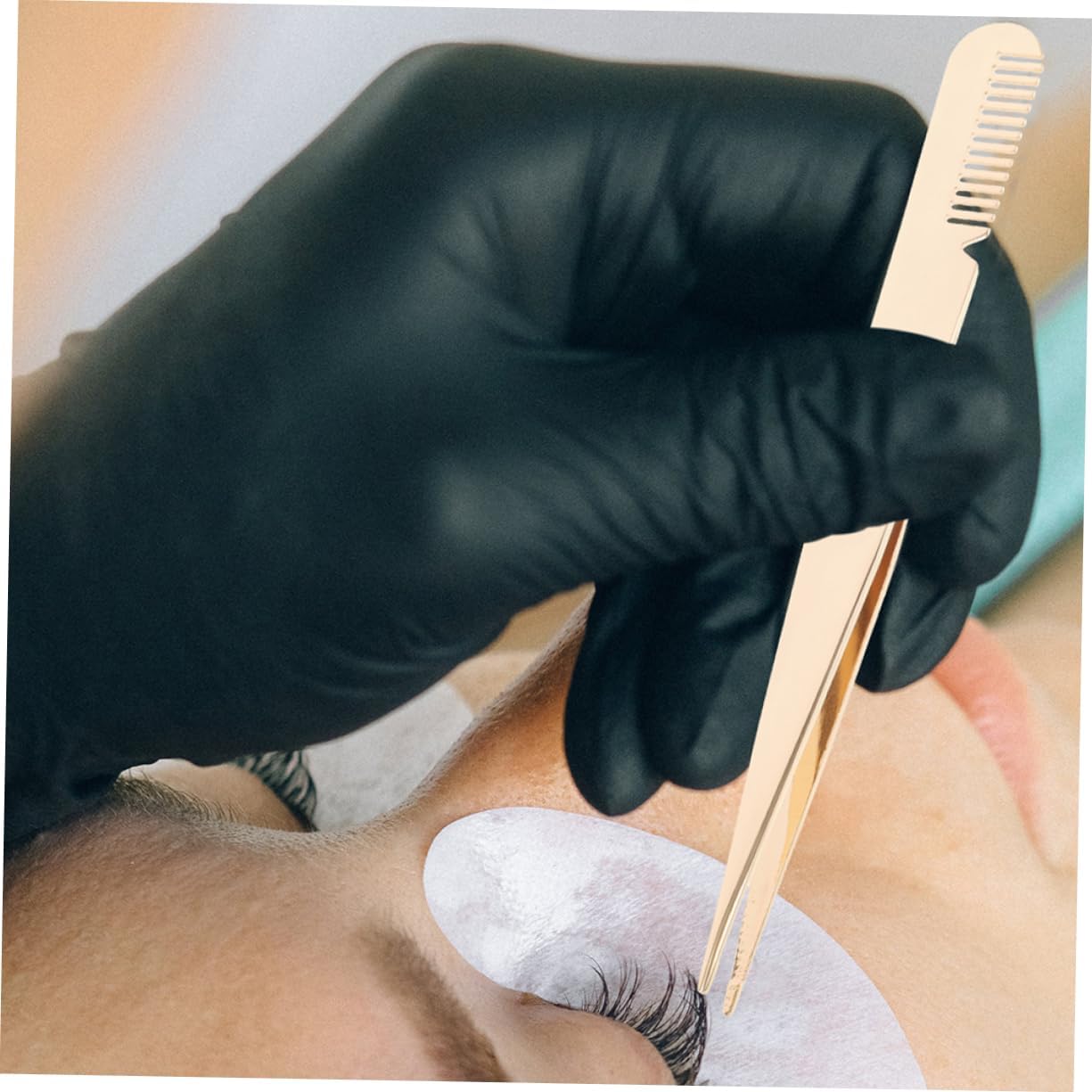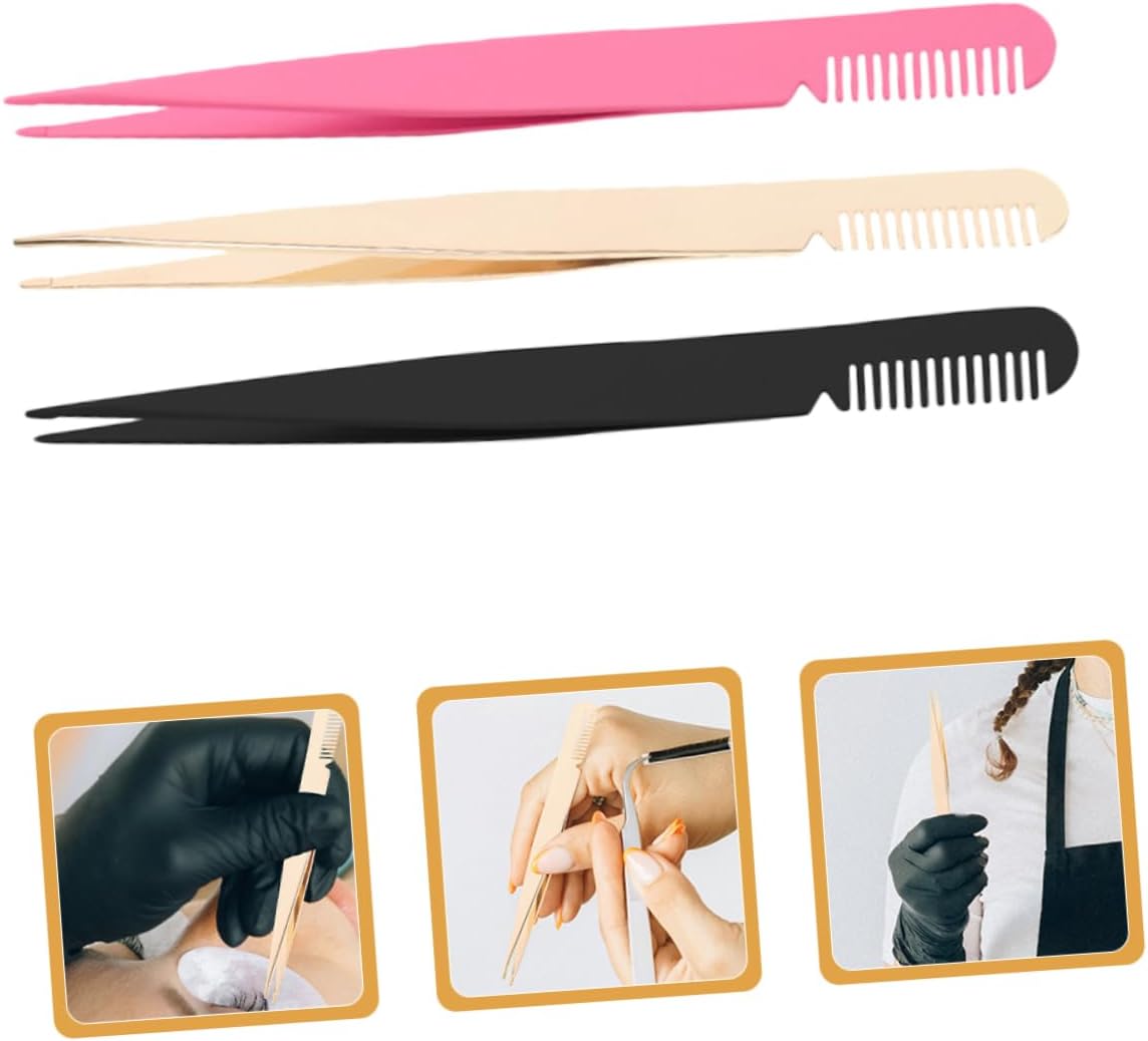 Beavorty 3pcs Eyelash Tweezers Eyebrow Tweezers with Comb Eye Lash Tweezers with Comb Lash Applicator Eye Lash Tweezers for Women Tweezers for Men Lash Tool Tweezers for Lash Extensions