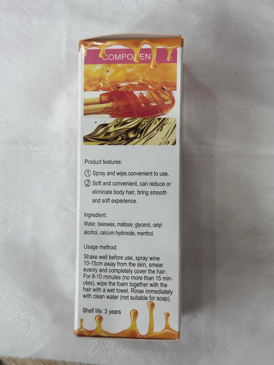【Easy To Use】Apply the Gentle beeswax hair removal mousse to the skin and spread it evenly to completely cover the body hair. Waiting 5 to 10 minutes to scrape off the hair remover with a spatula and thoroughly remove the depilation area with water.
