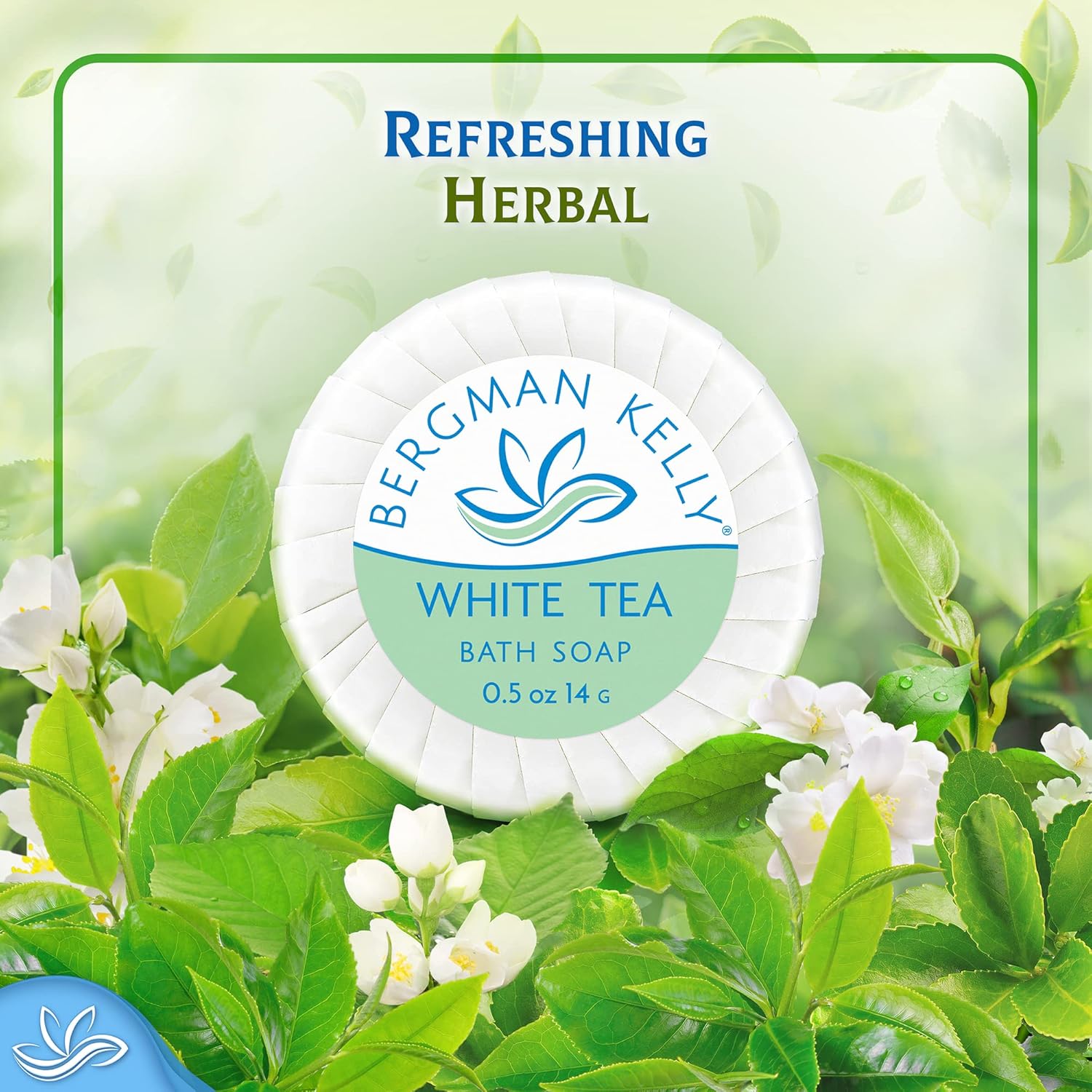 BERGMAN KELLY Hotel Soap Bars (White Tea, 0.5 oz, 100 PK), Travel Size Luxury Bulk Amenities Bar Soap, Mini Individually Wrapped Round Soap, Small Toiletries for Airbnb, Motel, Guest Bathroom