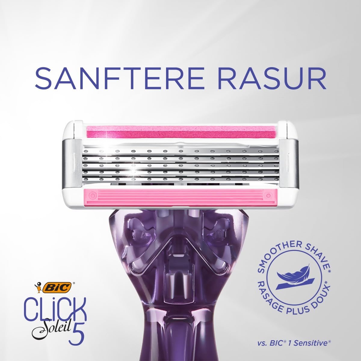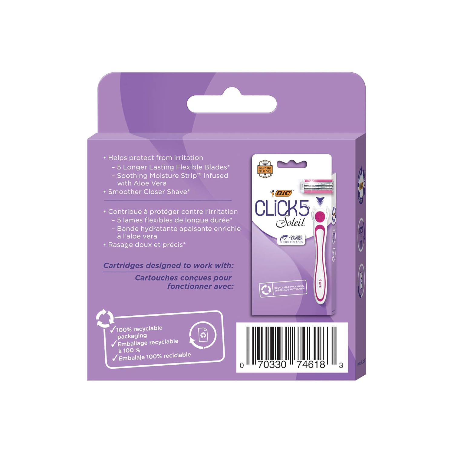 BIC Click 5 Soleil Women’s Disposable Razor Refills, 5 Blades With a Moisture Strip For a Smoother Shave, 4 Cartridges Refill Only