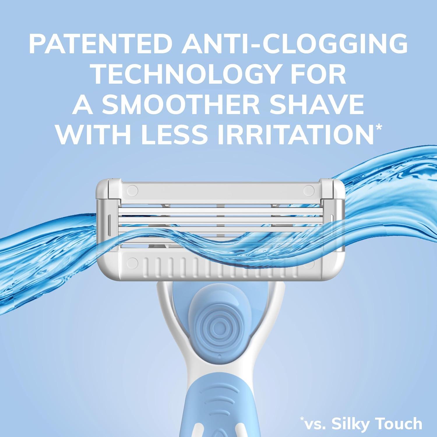 Say goodbye to constant blade clogging and enjoy a smoother shave with BIC EasyRinse Sensitive Refillable Women’s Razors. BIC EasyRinse Sensitive grooming products for women feature patented anti-clogging technology designed with 30% more space between the blades* for easy rinsing and less clogging and irritation**. Each pack contains up to 153 shaves*** so you can get the most out of your razors. This ten-piece razor kit with one EasyRinse refillable handle and nine razor refills is a great choice for a faster shave — up to 60 percent less time rinsing****. Each EasyRinse Sensitive razor is clinically proven for sensitive skin boasting four longer-lasting** blades, a pivoting head and moisture strips infused with aloe vera, shea and cocoa butter. Shaving shouldn’t be frustrating, so BIC EasyRinse Sensitive women’s razors make it easy to tame any unwanted fuzz, even long or coarse hair. Plus, this slim portable razor can also slip easily into travel kits or gym bags for a fantastic shave — whenever, wherever. Once you’ve used all your cartridges, hold on to your razor handle and purchase a pack of refill razor cartridges. Experience breakthrough technology at a price you are sure to love with BIC EasyRinse Sensitive Refillable Shaving Razors for women — designed for a smooth, effortless shave with less rinsing, skin irritation and clogging. *Based on average distance between blade edges vs. BIC Soleil Click 5 **vs. BIC Silky Touch ***Avg. shave frequency women 2x/week ****vs. BIC Flex 3