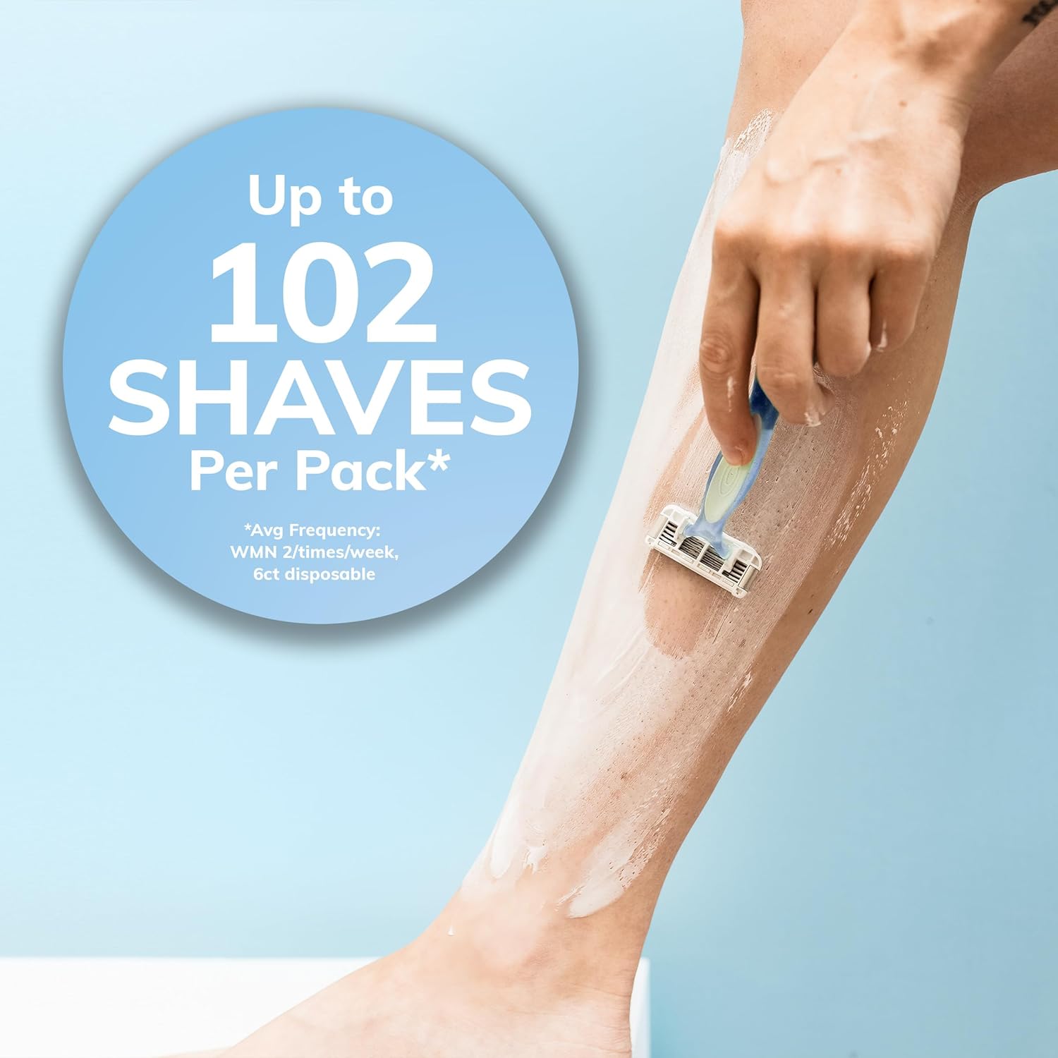 Each pack contains up to 102 shaves so you can get the most out of your razors* *Avg Shave Frequency women 2x/week