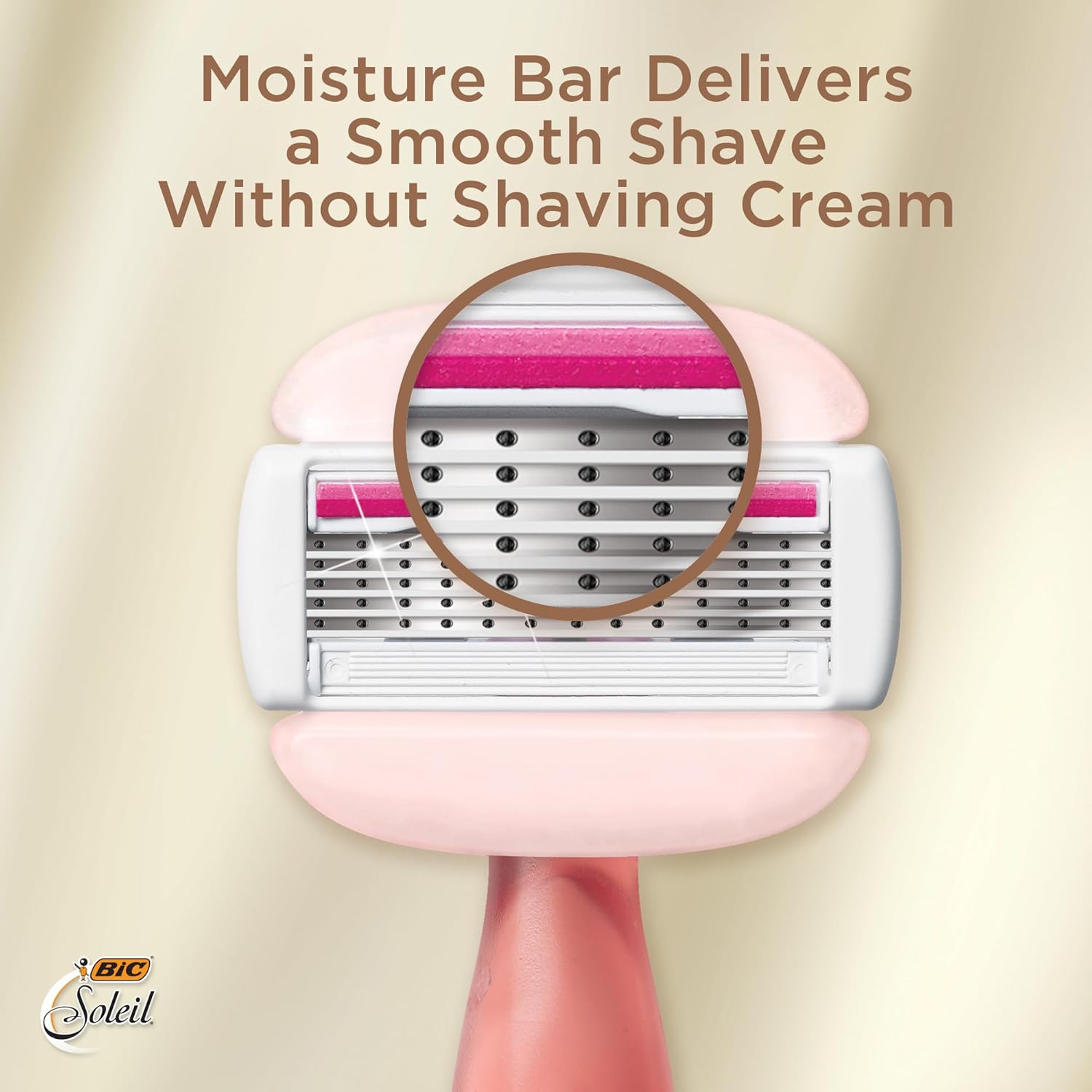 The BIC Soleil Glide razor features 5 flexible blades that individually adjust to the contours of your body to deliver a flawlessly smooth shave. The BIC Soleil Glide razor features moisture bars that are infused with Shea butter for a smooth glide and shave. No shaving cream is needed.