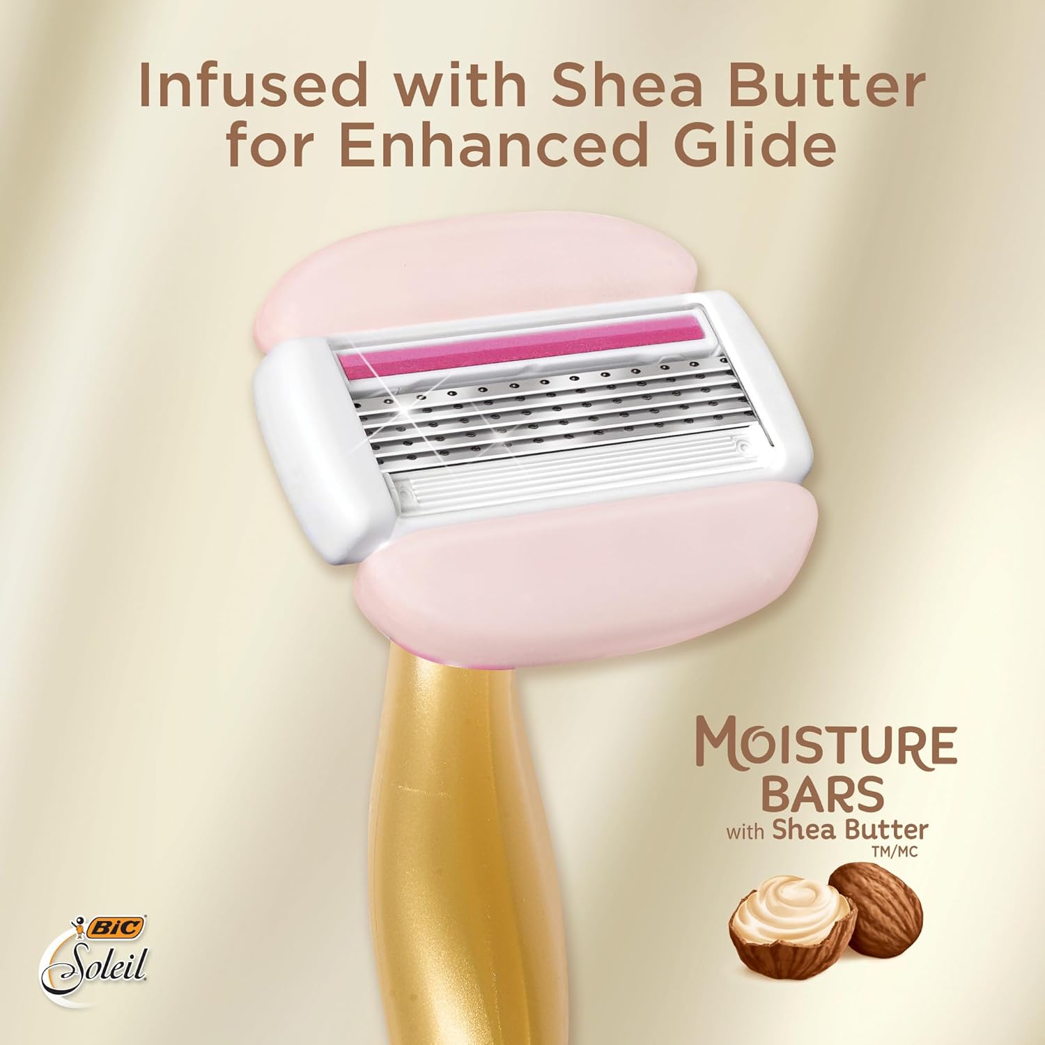 BIC Soleil Glide Disposable Razors for Women, 5 Blades With Shea Butter Moisture Strip For a Smooth Glide, 2 Piece Razor Set