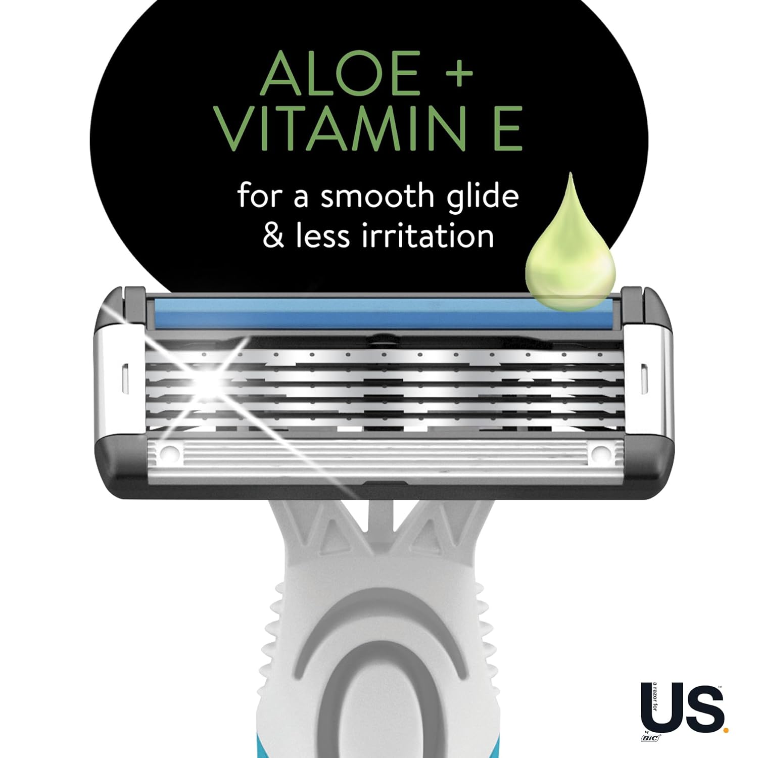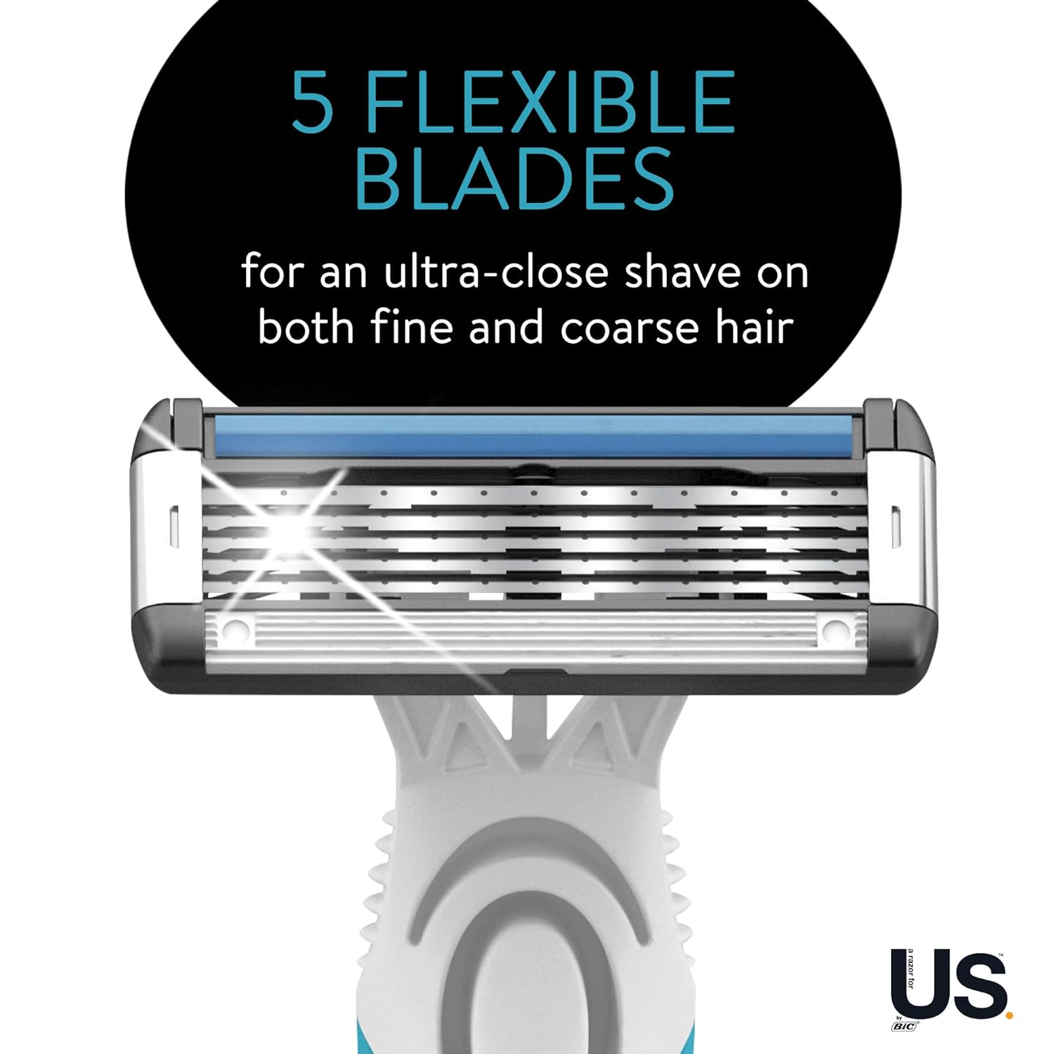 BIC Us. 5-Blade Unisex Disposable Razors For Men and Women, Lubrication Strip For a Smooth, Close Shave, 12-Count