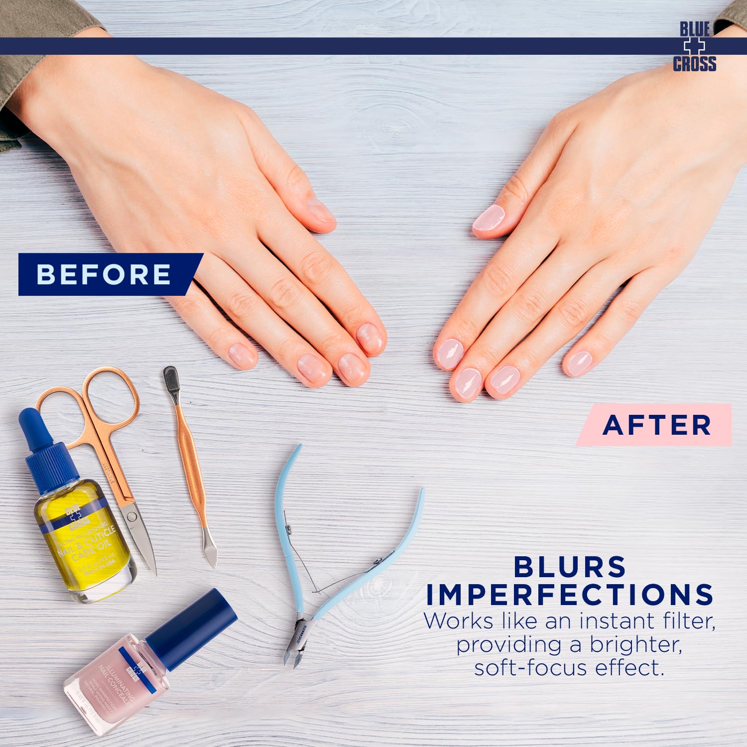 PORCELAIN PINK FINISH: Blue Cross Illuminating Nail Concealer has a porcelain pink finish that incorporates ultra-fine light reflecting particles to diffuse light and neutralize discoloration. Its illuminating formula is designed to enhance the natural beauty of your nails with a subtle shine.