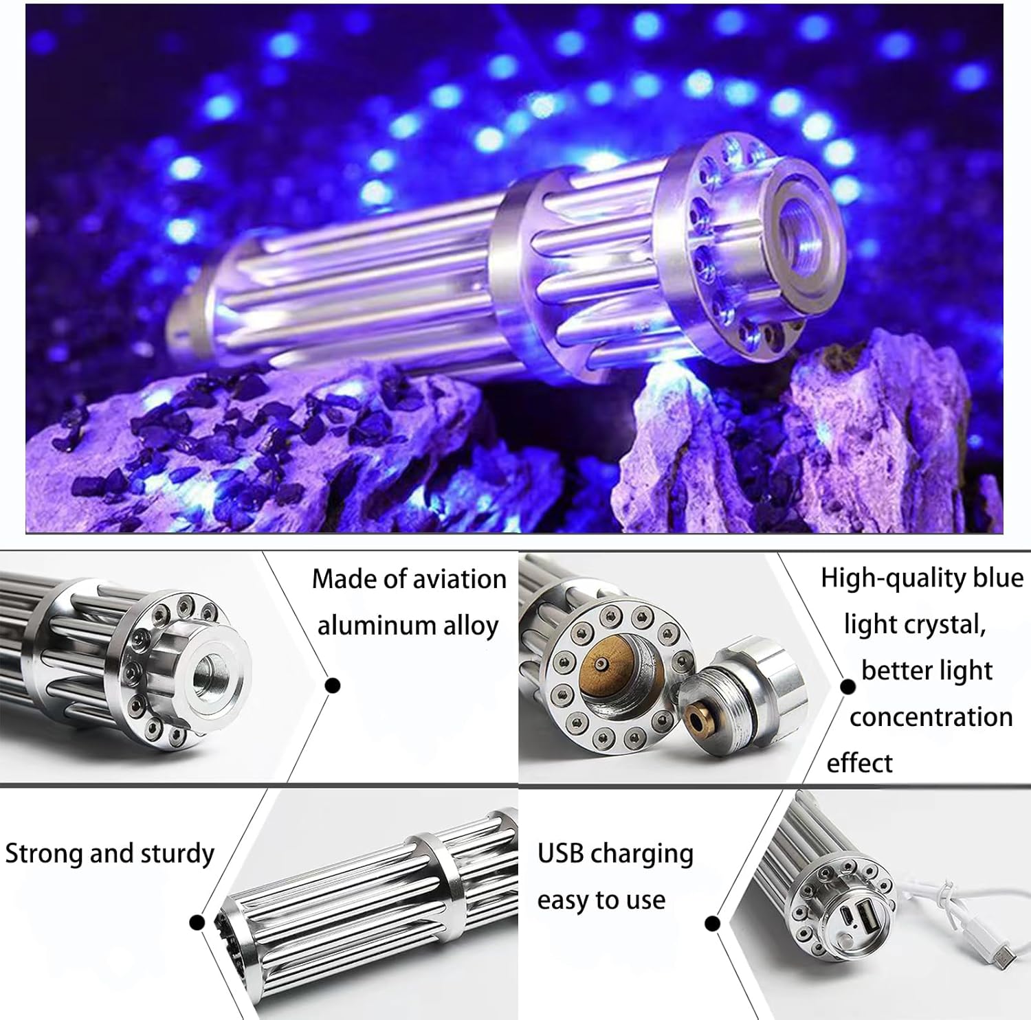 Blue Light High Power Flashlights Outdoor Camping Travel Rechargeable with USB C Cable and Box