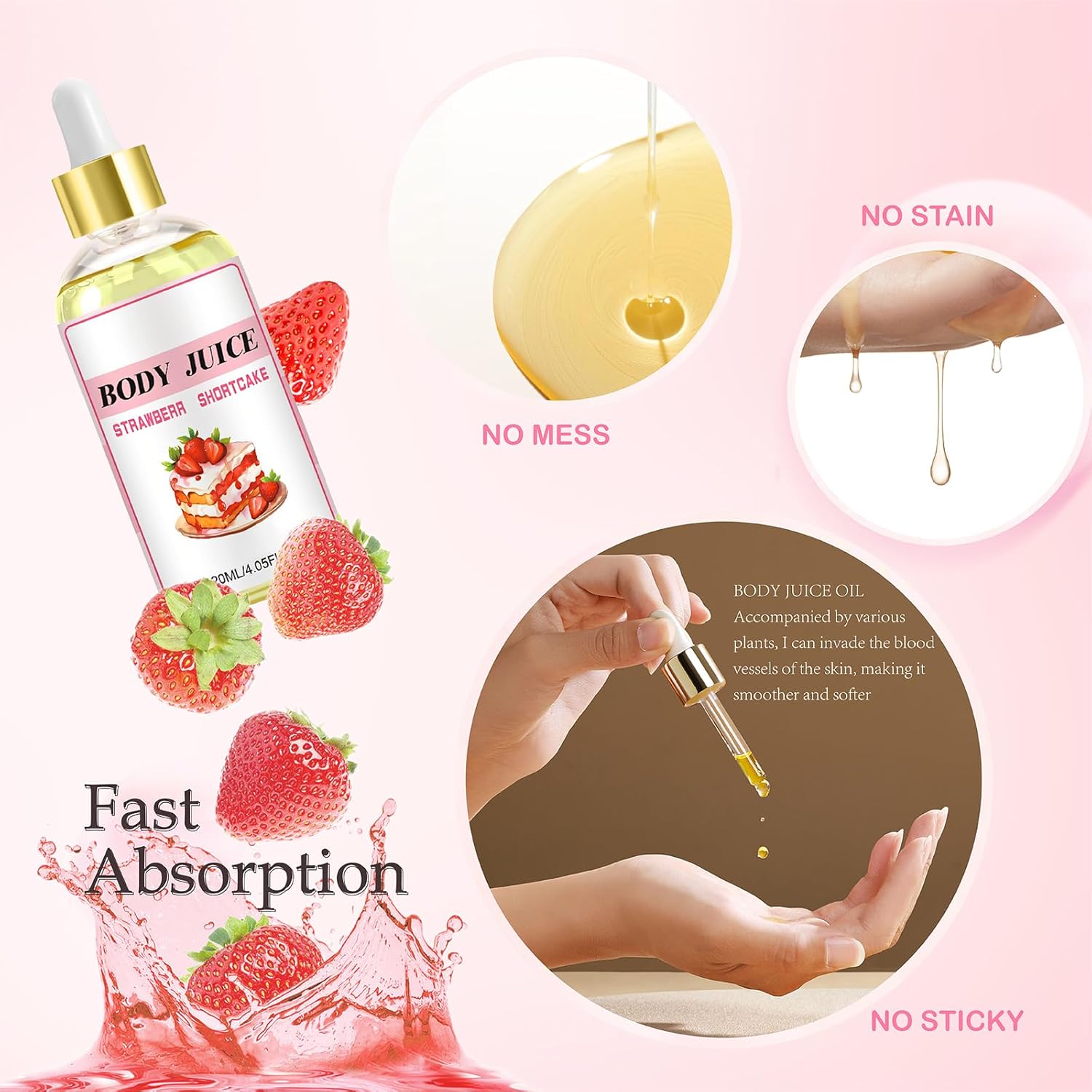 Body Juice Oil, Strawberry Shortcake Body Oil, Body Juice Oil Strawberry Shortcake, 120ml Hand Crafted Body Oil for Women (1 Pcs)