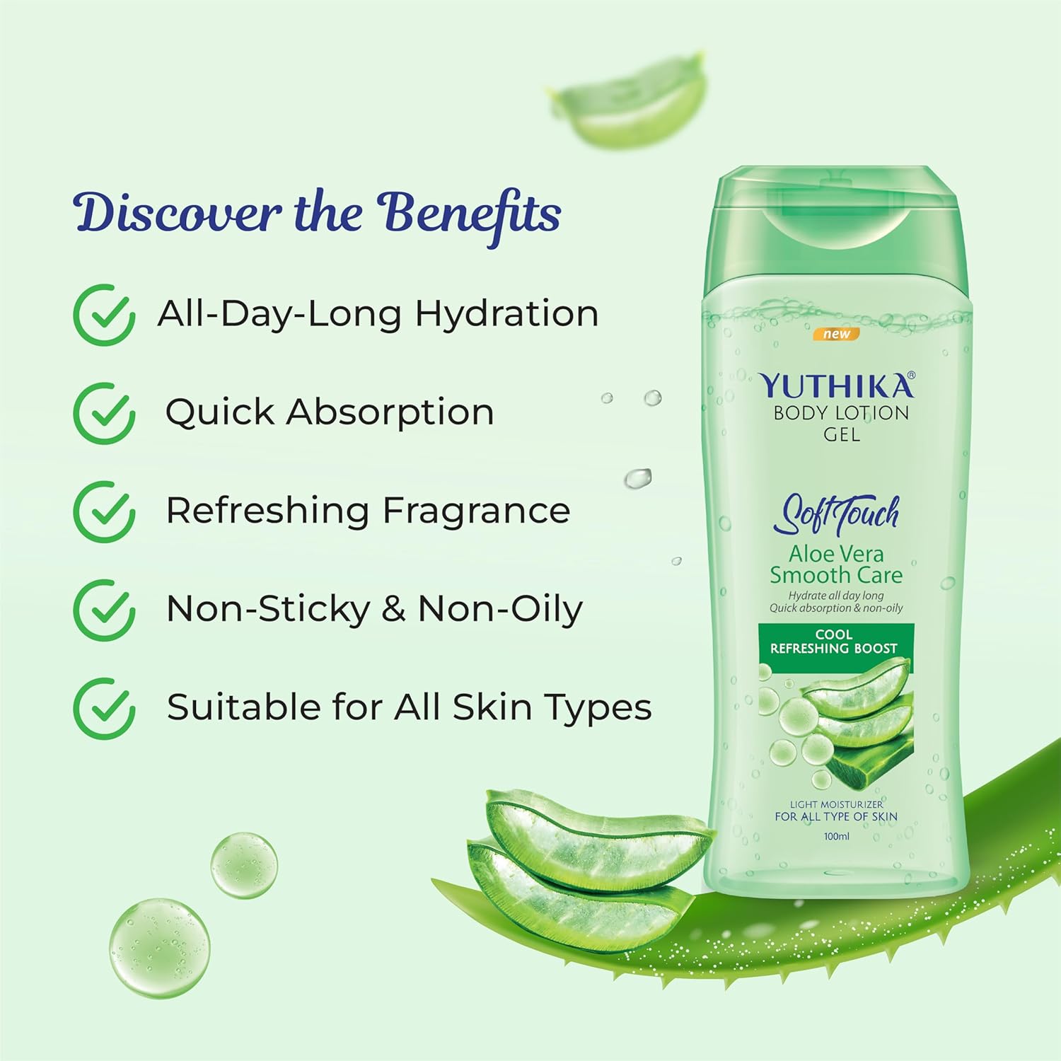 Body Lotion Gel Aloe Vera Smooth Care 100ml Pack of 1, Soft Touch Gel Body Lotion for Summer, Winter, Light Moisture for Face and All Skin Types, Aloe Vera Body Lotion