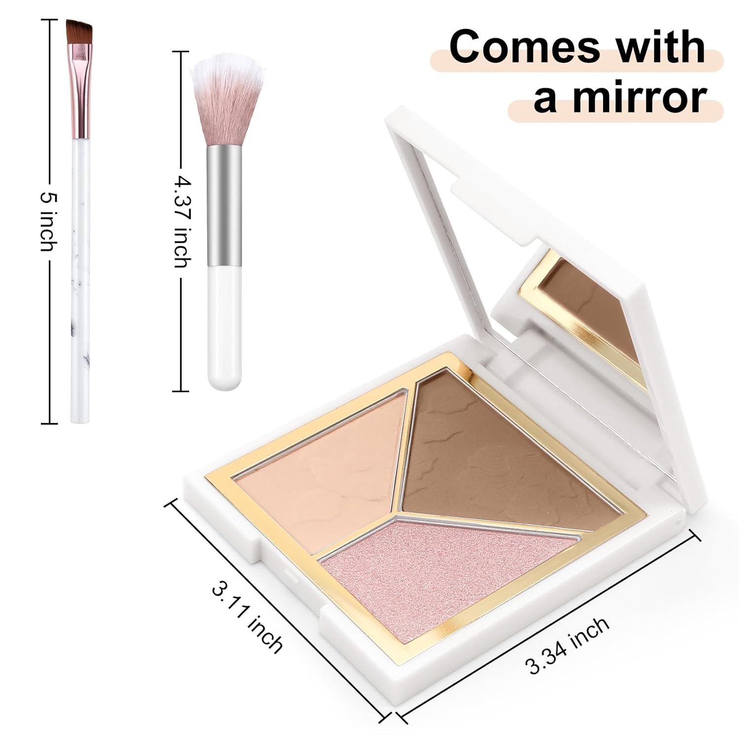 Easy to Apply and Blend: Contouring, simply apply a little of the bronzer shades on the side of the nose and contours of the cheeks, some blusher on the cheekbones, and a touch of highlighter on the arch of the brows chin and cheekbones, and gently blend with a brush.