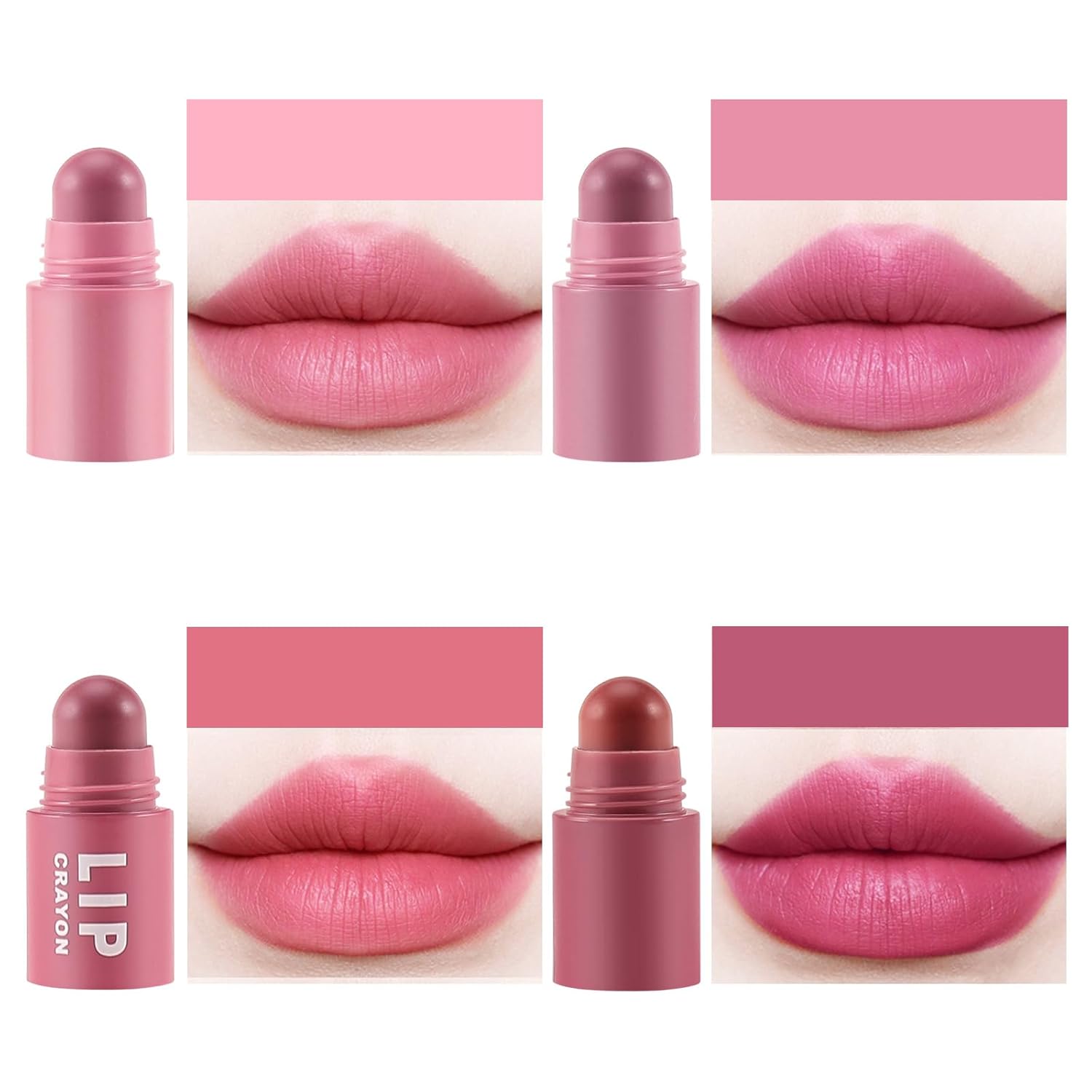 Boobeen Lipstick Crayon Lip Gloss Makeup Lasting Matte Velvet Multi-Color Lipstick Pencil, Crayon Lip Stick Set Gifts for Girls and Women, 4 Colors
