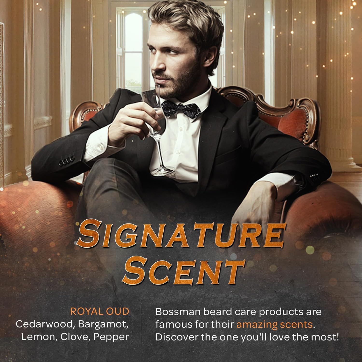 Bossman Hair & Beard Pomade – Moisturizing with Longer Hold and Control – Men’s Hair, Beard and Moustache Styling Product – Made in USA (Royal Oud Scent)