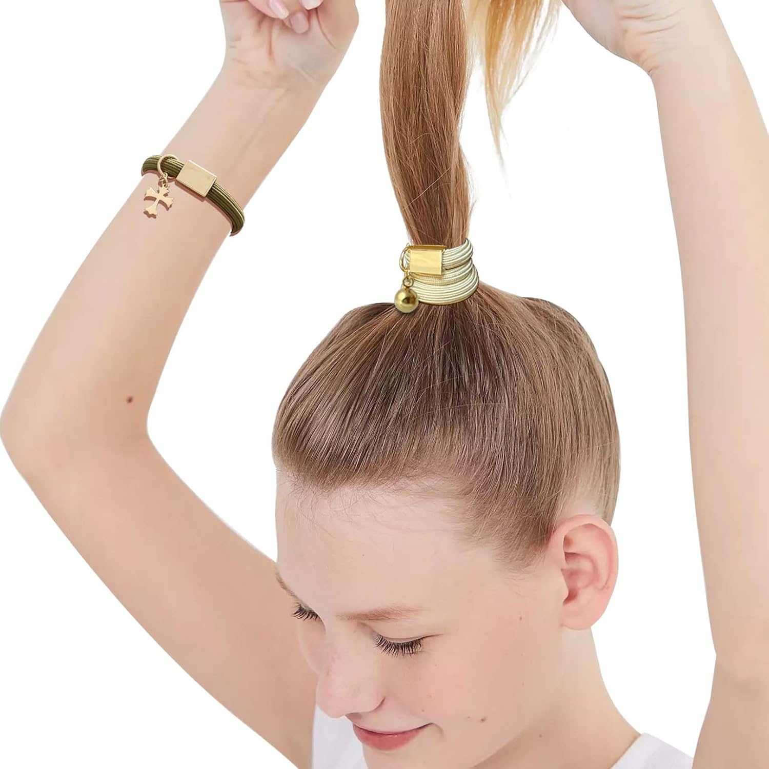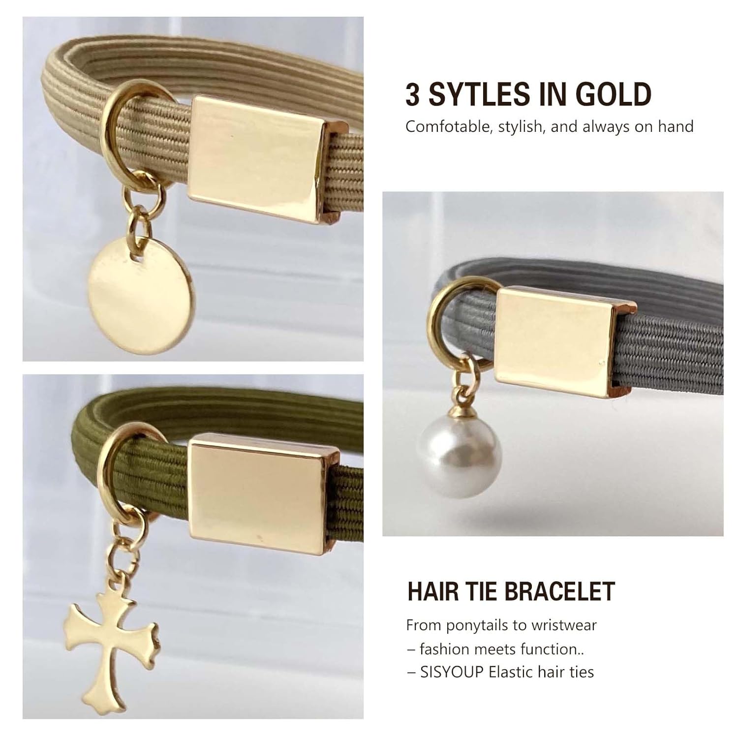 HAIR TIES THAT LOOK LIKE BRACELETS: Sisyoup elastic hair ties can be worn as both hair accessories and trendy bracelets. The metal charms design adds an elegant flair to your wrist. Whether you need a reliable hair tie or want to rock a trendy bracelet, our fancy Hair Tie Bracelet set has everything you need. Be creative, be chic