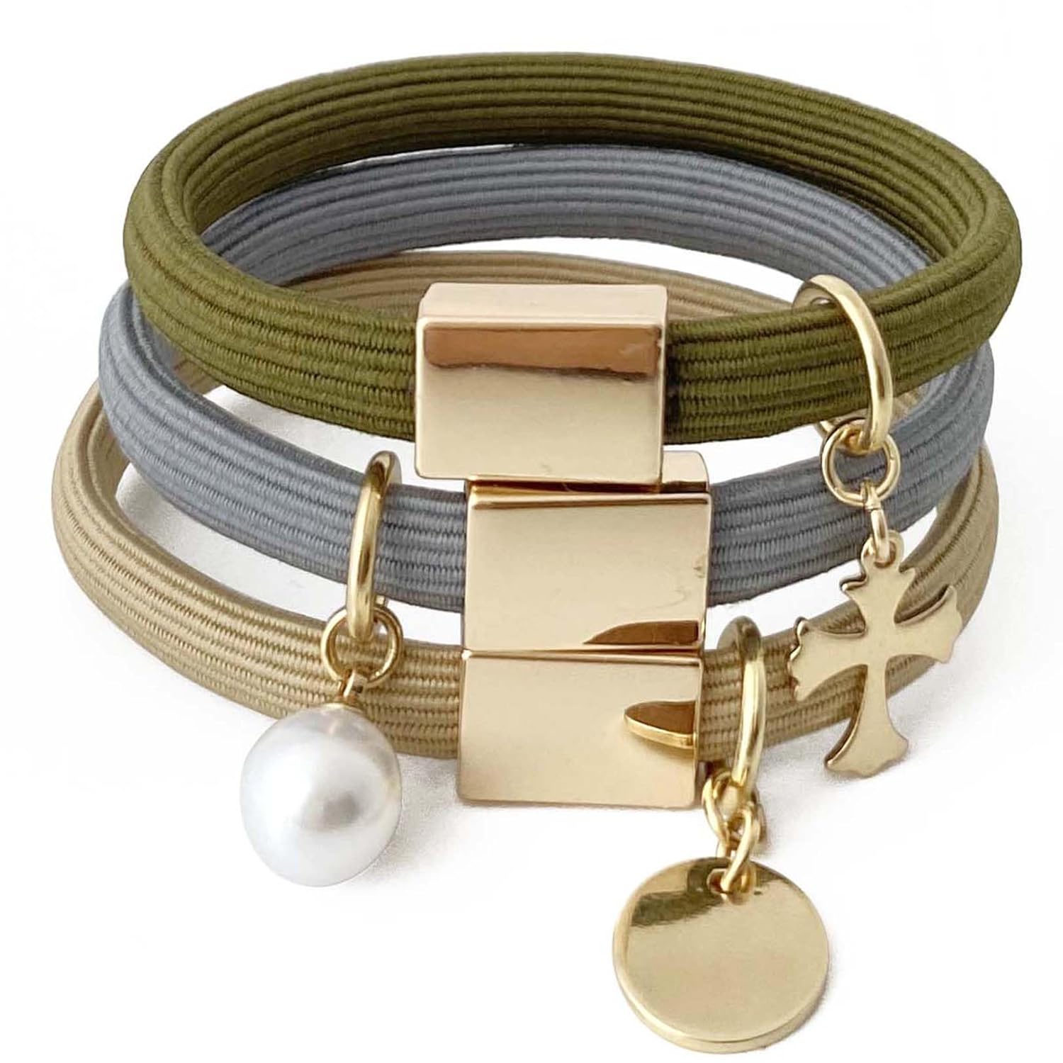 FUNCTIONALITY MEETS ELEGANT STYLE: These versatile hair accessories not only keep hair secure but also double as fashionable bracelets. The pearl and metal pendant add a touch of fashion to your everyday look. Whether you’re at the gym, in the office, or out, these cute hair ties will complement any outfit effortlessly.When not in use, simply wear the bracelet on your wrist for easy access to a hair tie wherever you go. Never worry about misplacing your hair tie again