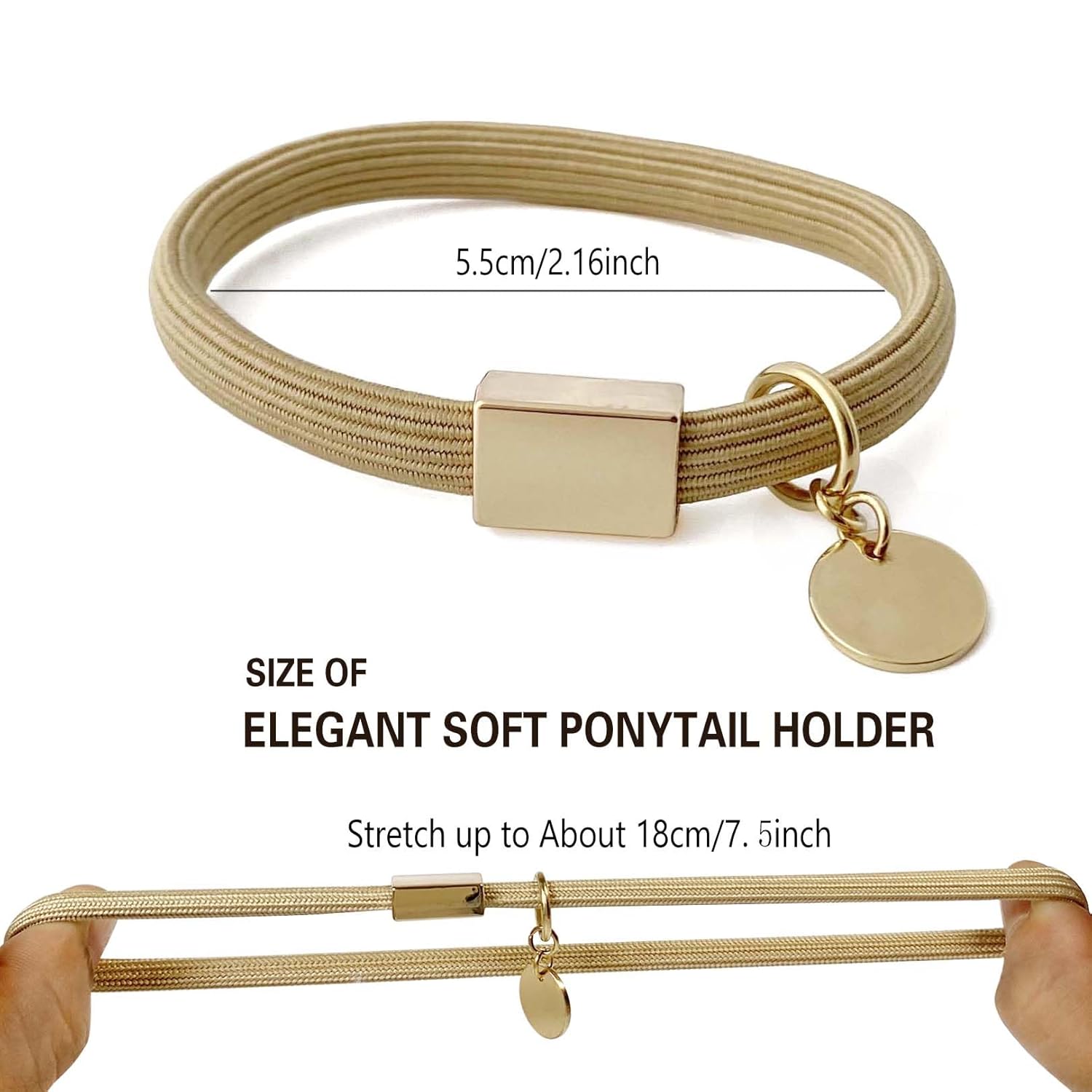 Bracelet Hair Ties for Thick Hair, 8mm Thick Hair Tie Bracelets for women with Gold Charm Cute Ponytail Holders Accessories No Damage for Girls Elastic Hair Bands No Slip Hair Ties for High Pony tails