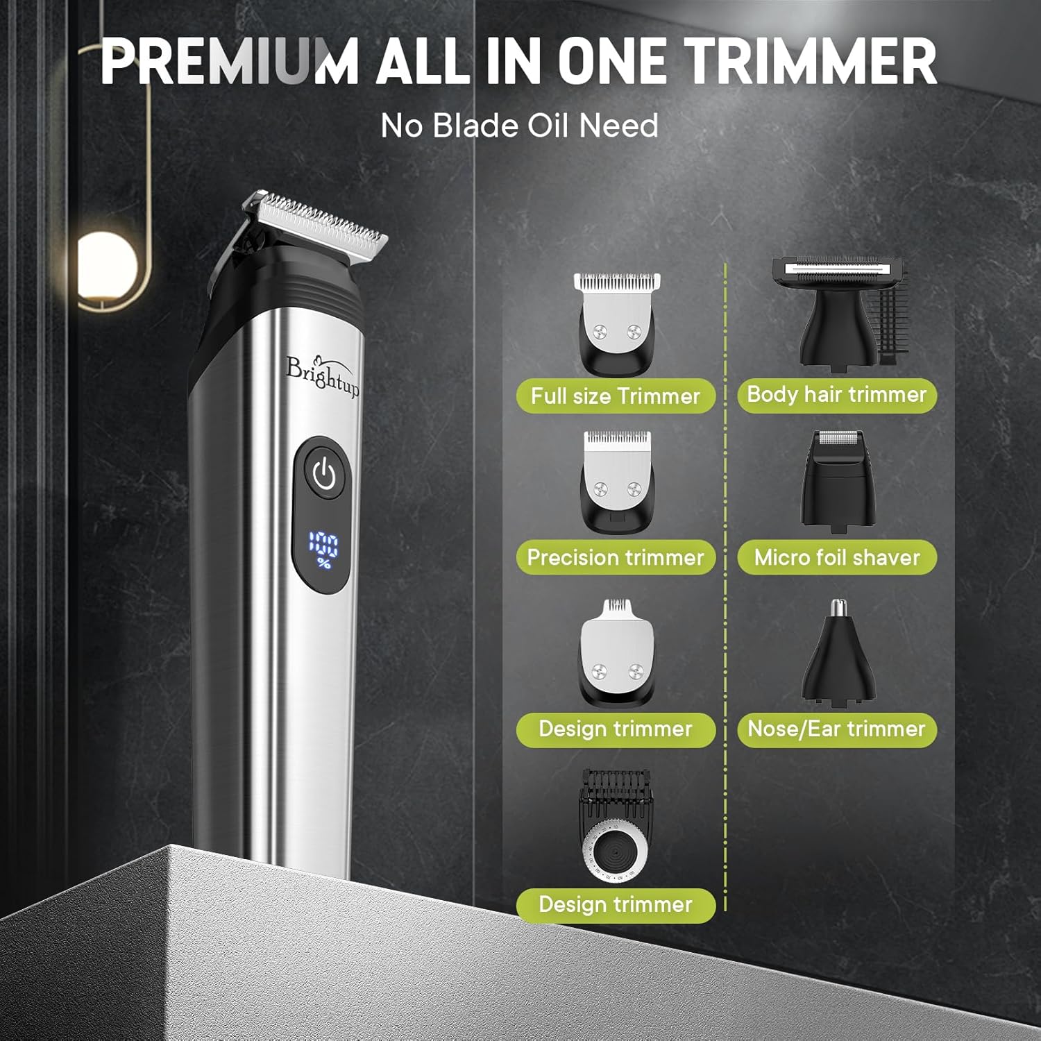 Brightup Beard Trimmer for Men, All-in-One 22 Piece Beard Grooming Kit, IPX7 Waterproof Wet/Dry Cordless Hair Clippers Electric Razor for Beard, Face, Nose, Body, and Groin, Gifts for Men