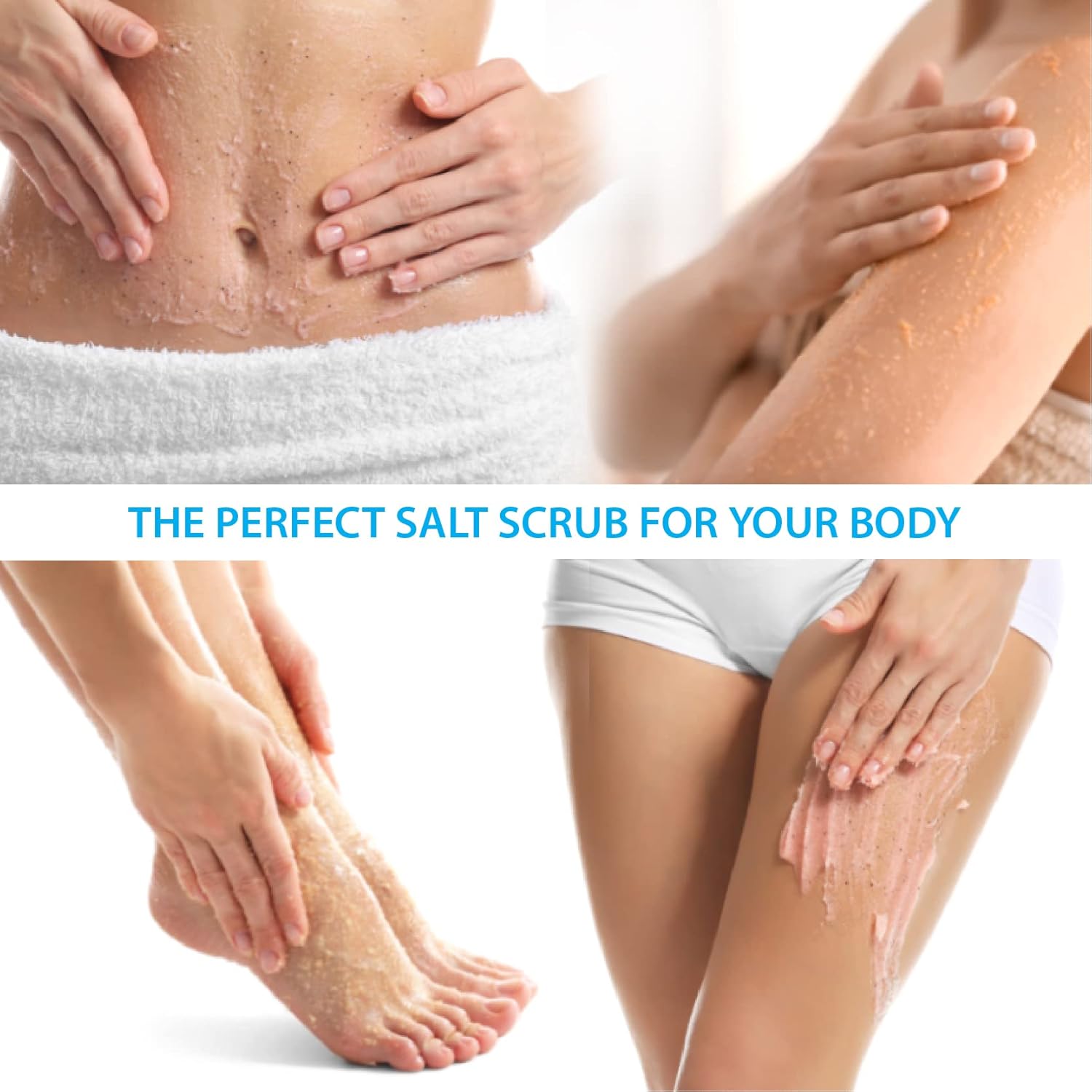BEST BODY EXFOLIATOR – exfoliating with body scrub with Coconut can improve the texture, tone and appearance of your skin, helps reduce the appearance of cellulite, wrinkles, fine lines, stretch marks, scars and can be used as an exfoliating foot scrub. Using a salt scrub is known to increase circulation, assist in the rejuvenation of your cells!