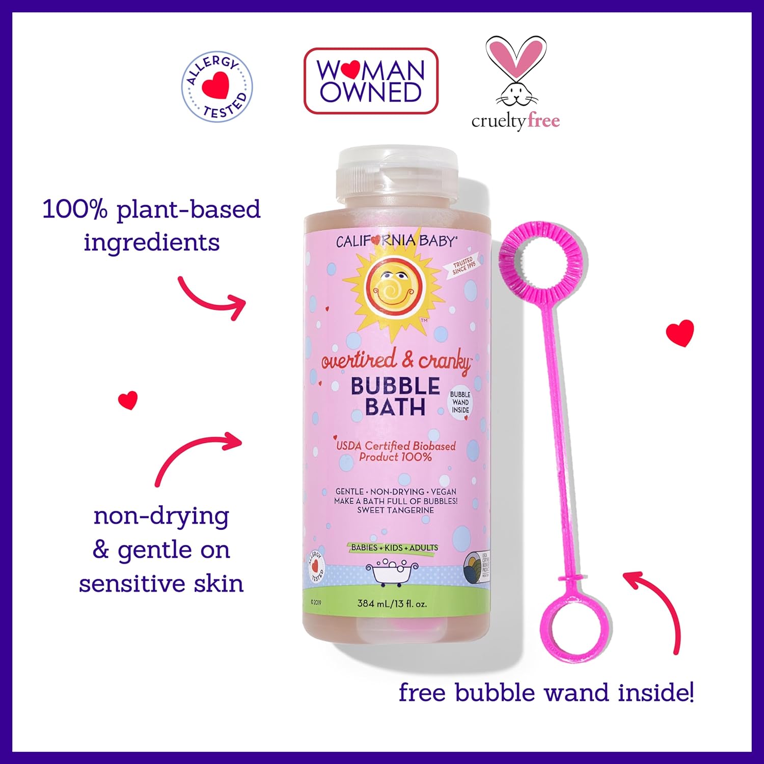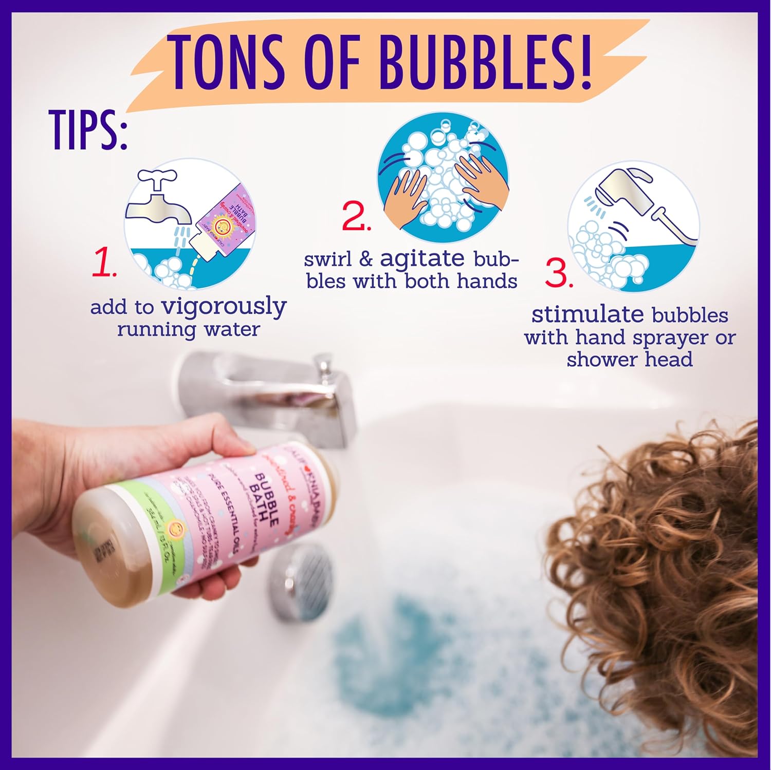 GENTLE & NON-DRYING FORMULA: Our sensitive skin-friendly bubbling ingredients create tons of bubbles! Added Organic aloe vera and calendula extract soothes the skin. FREE bubble wand inside each bottle for extra bath fun!