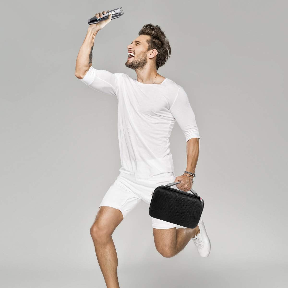 MENS BEARD TRIMMER HOLDER WITH SMOOTH ZIPPER AND STURDY HANDLE STRAP: the firm and smooth zipper is easy for closing and opening to give you a good experience. The inner mesh bag with zipper avoids the risk of accessories being lost and dropped. The handle strap made of PU and EVA, which is very firm and convenient for you to carry.