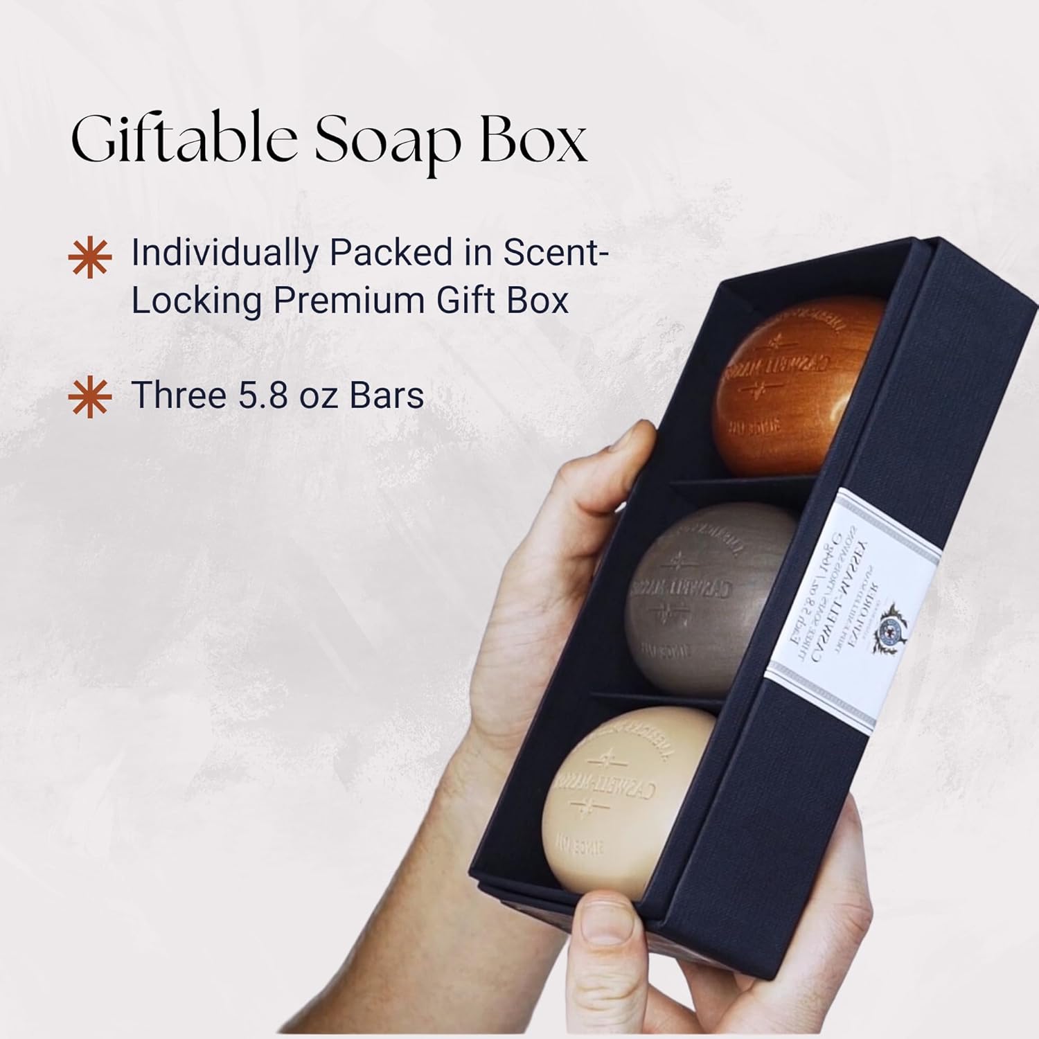 The Perfect Giftable Soap Set: This natural soap set comes in a three-pack and is a great gift for a birthday, holiday, or any other occasion. Enjoy its rich lather on the face, body and as a luxury hand soap.