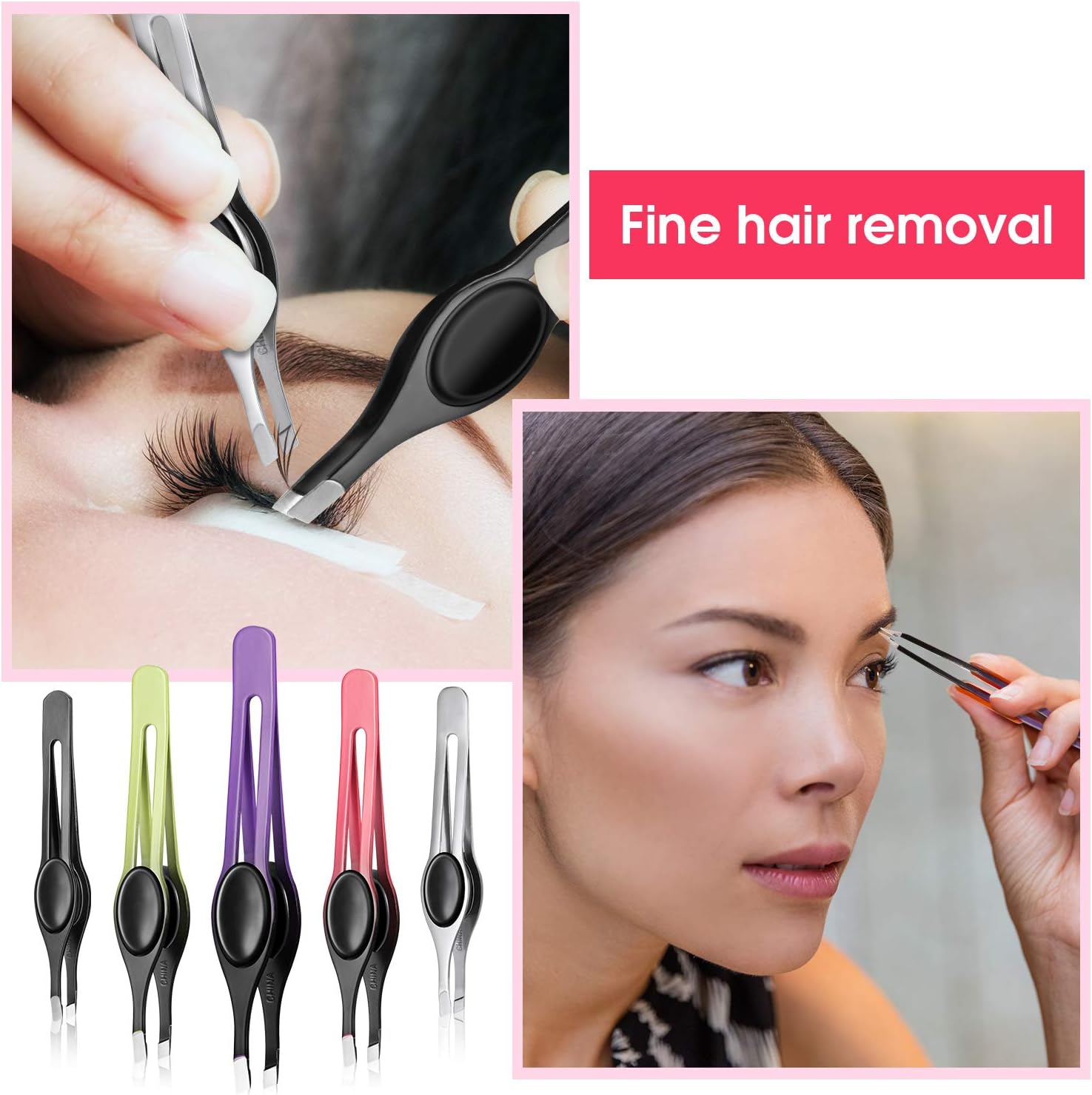 Our non-slip grip tweezers reduce irritation and redness by cleanly pulling and plucking without tugging at tender skin, perform well for the removal of splinters, blackheads, eyelash extensions, eyebrow shaping, etc.