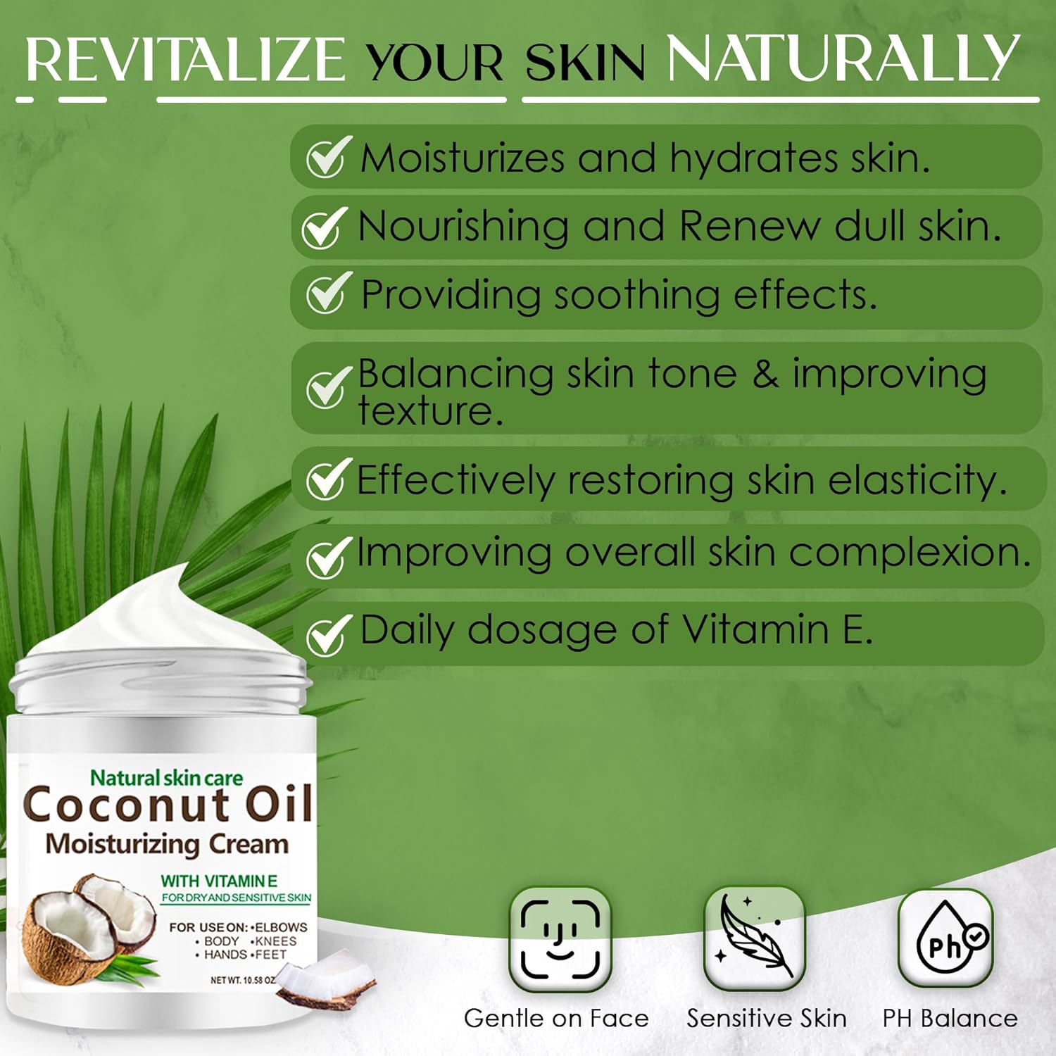 COCONUT OIL FOR FACE AND BODY: Experience the benefits of coconut oil for your face and body with our moisturizing face cream and body butter, leaving your skin soft and supple.