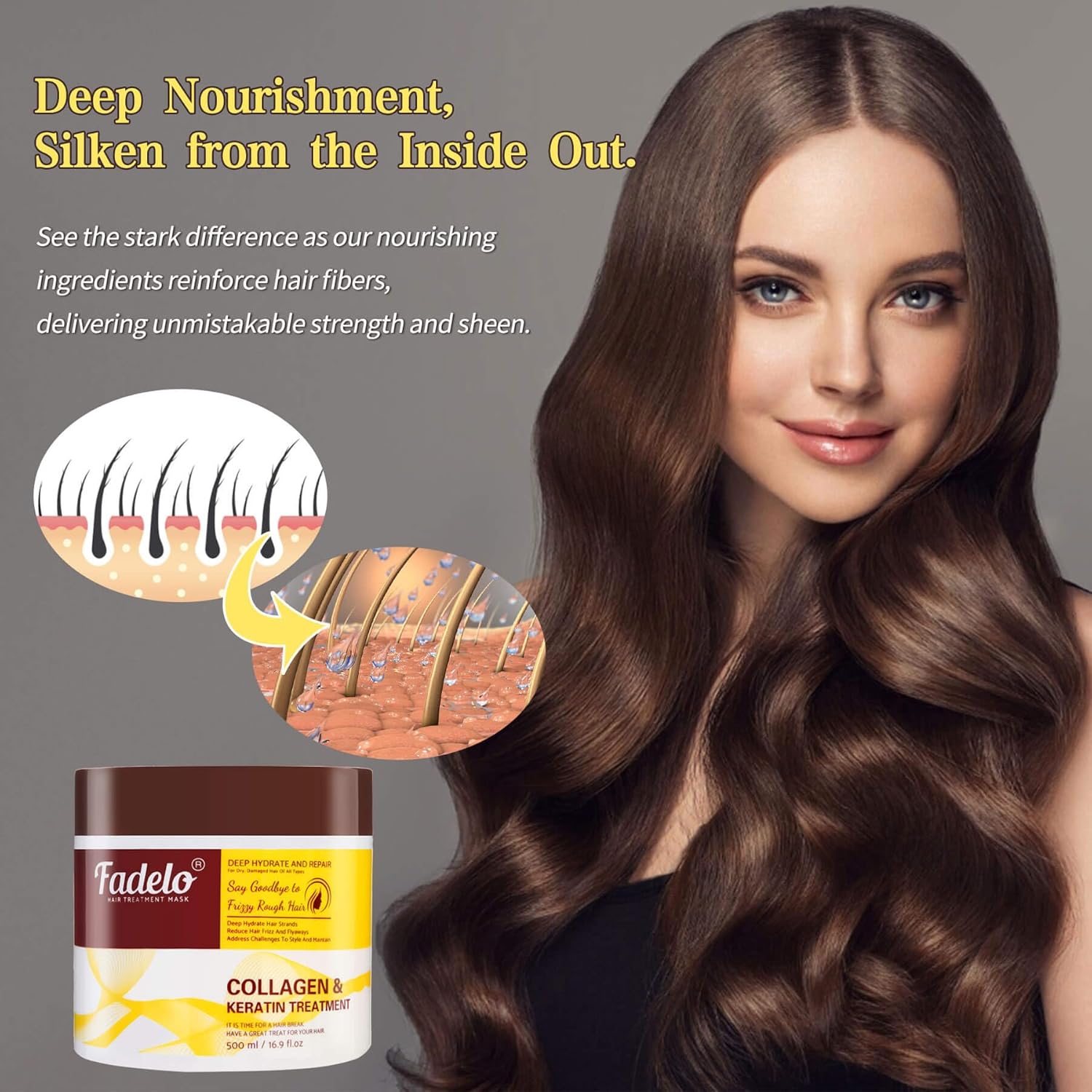 Collagen & Keratin Hair Mask for Damaged Hair – Deep Nourishing Repair with Argan Oil and Vitamin E – Hydrating Treatment for Dry, Damaged Hair – 500ml/16.90oz