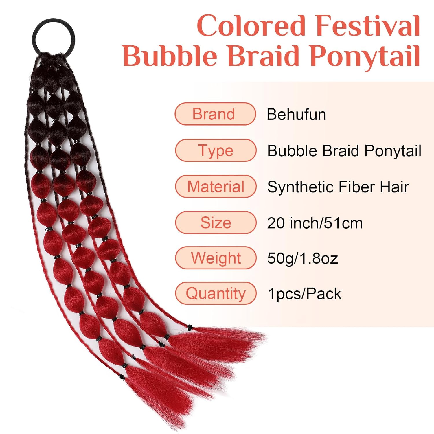 🌺Festival Bubble Braids – Want to spice up your hair for a festival, but on a budget? Bring the Behufun colored bubble ponytail extension to complete your outfit! These easily attach to your hair and can be added to space buns, one high pony, or two lower pig tail. If you want to add length and more volume, we recommend 2-3 packs. Length: 20 inch/51cm, Weight: 50g/1.8 oz;