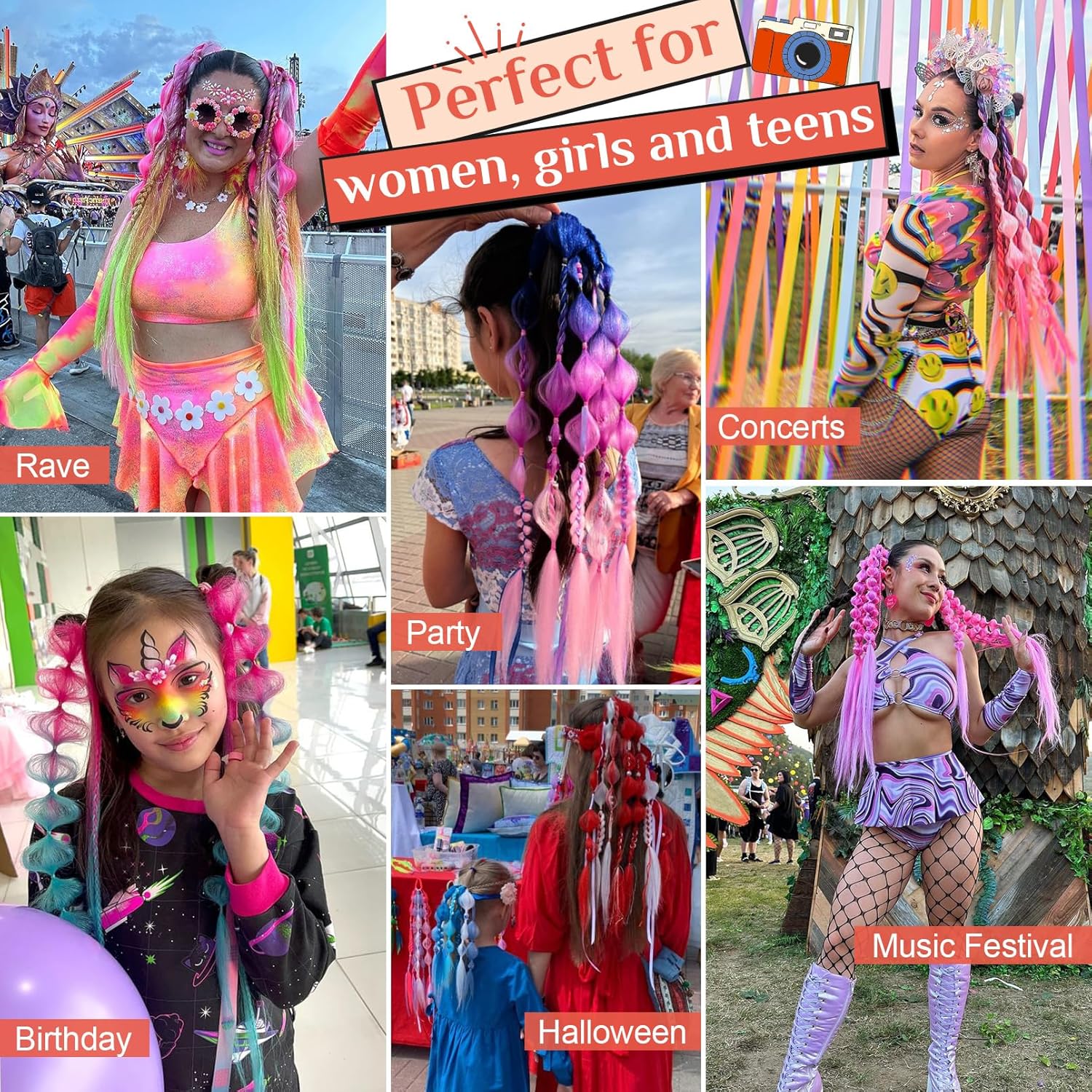 🌺Suitable for All Ages – Perfect for women, girls and kids. This colored hair extensions makes a perfect crazy hair day accessory for EDC festival, music festivals, raves, themed party, concert, school event, crazy hair days, dress up day, costumes, cosplay, and other fun events. And also a great gift for your daughter, friends and families.