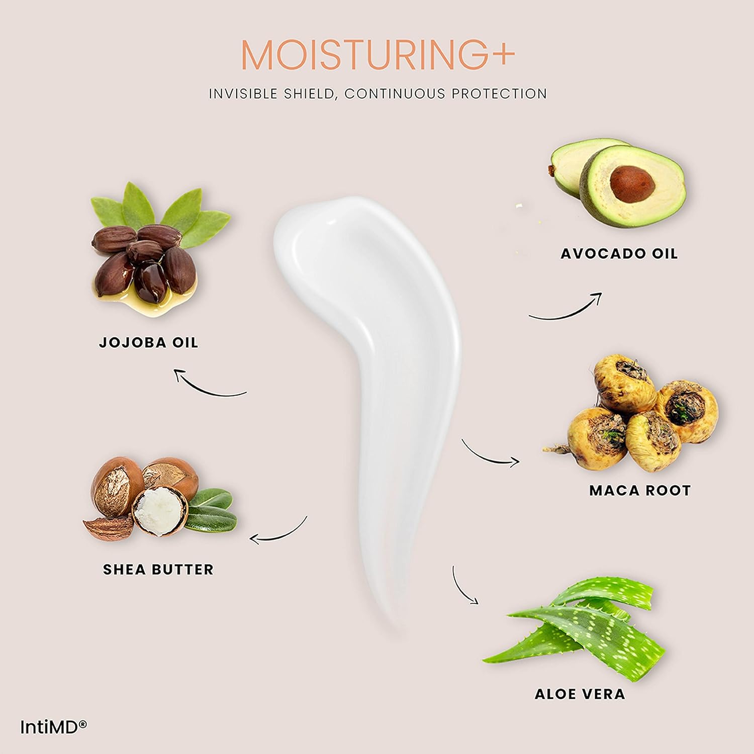 IntiMD Chafe Lotion with RealDry formula goes on your skin like lotion, then it transforms into a soft velvety almost powder-like finish. This creates a barrier between your skin and clothing to reduce friction. Great for the inner thigh, groin, buttocks, under arm, shoulder and even feet.