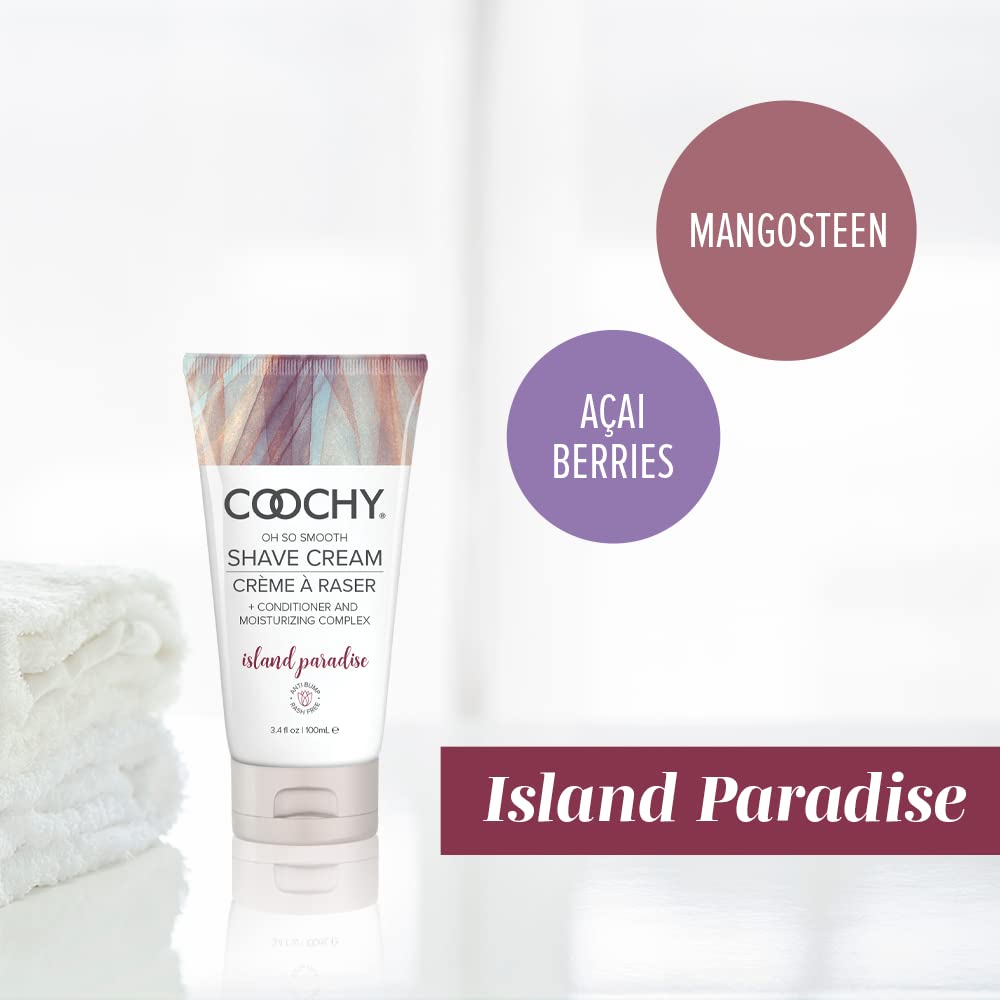 Coochy Rash-Free Shave Cream | Conditioner & Moisturizing Complex | Ideal for Sensitive Skin, Anti-Bump | Made w/Jojoba Oil, Safe to Use on Body & Face | Island Paradise 3.4floz/ 100mL