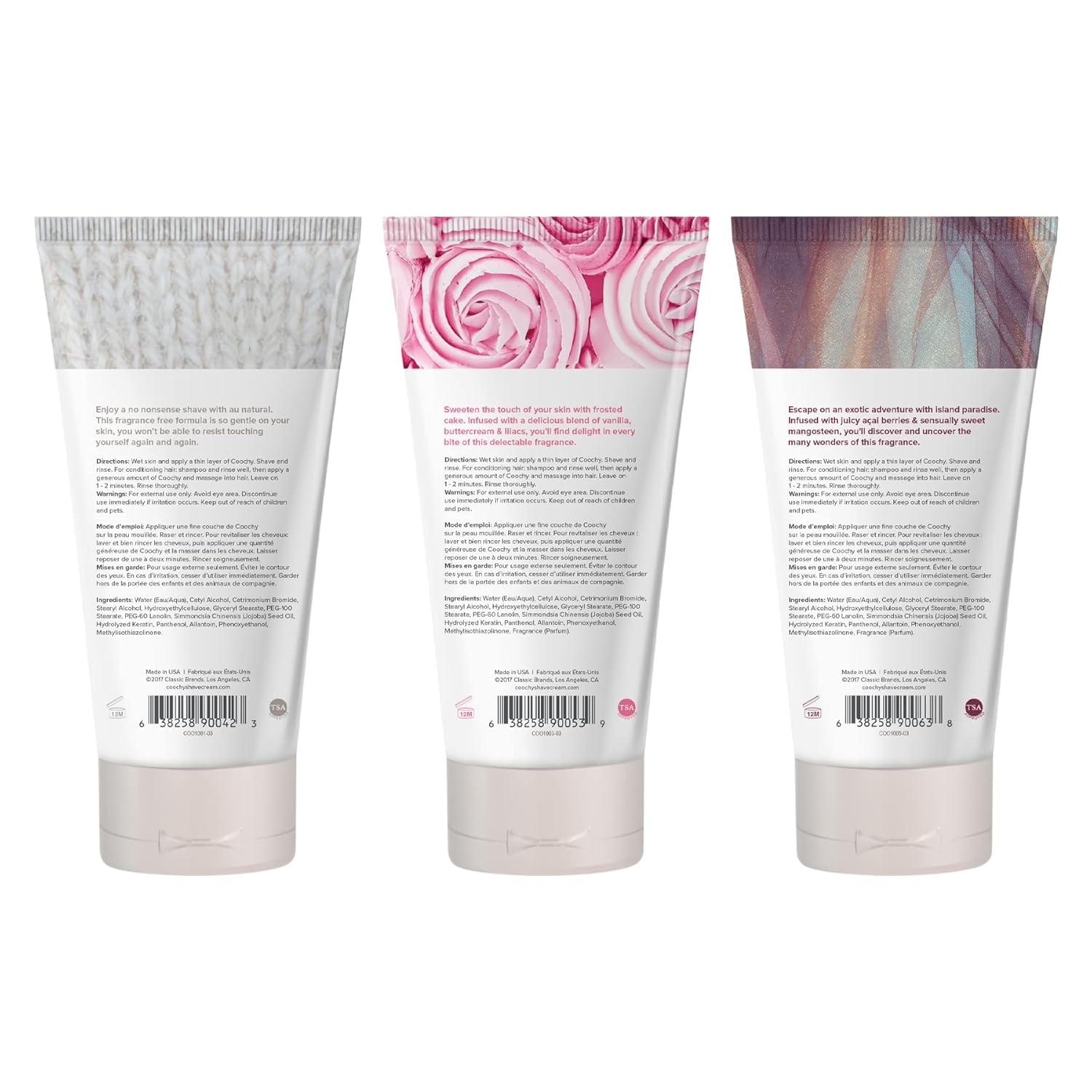 COOCHY SHAVE CREAM Au Natural – 3.4 floz/100 mL, COOCHY SHAVE CREAM Frosted Cake – 3.4 floz/100 mL and COOCHY SHAVE CREAM Island Paradise – 3.4 floz/100 mL