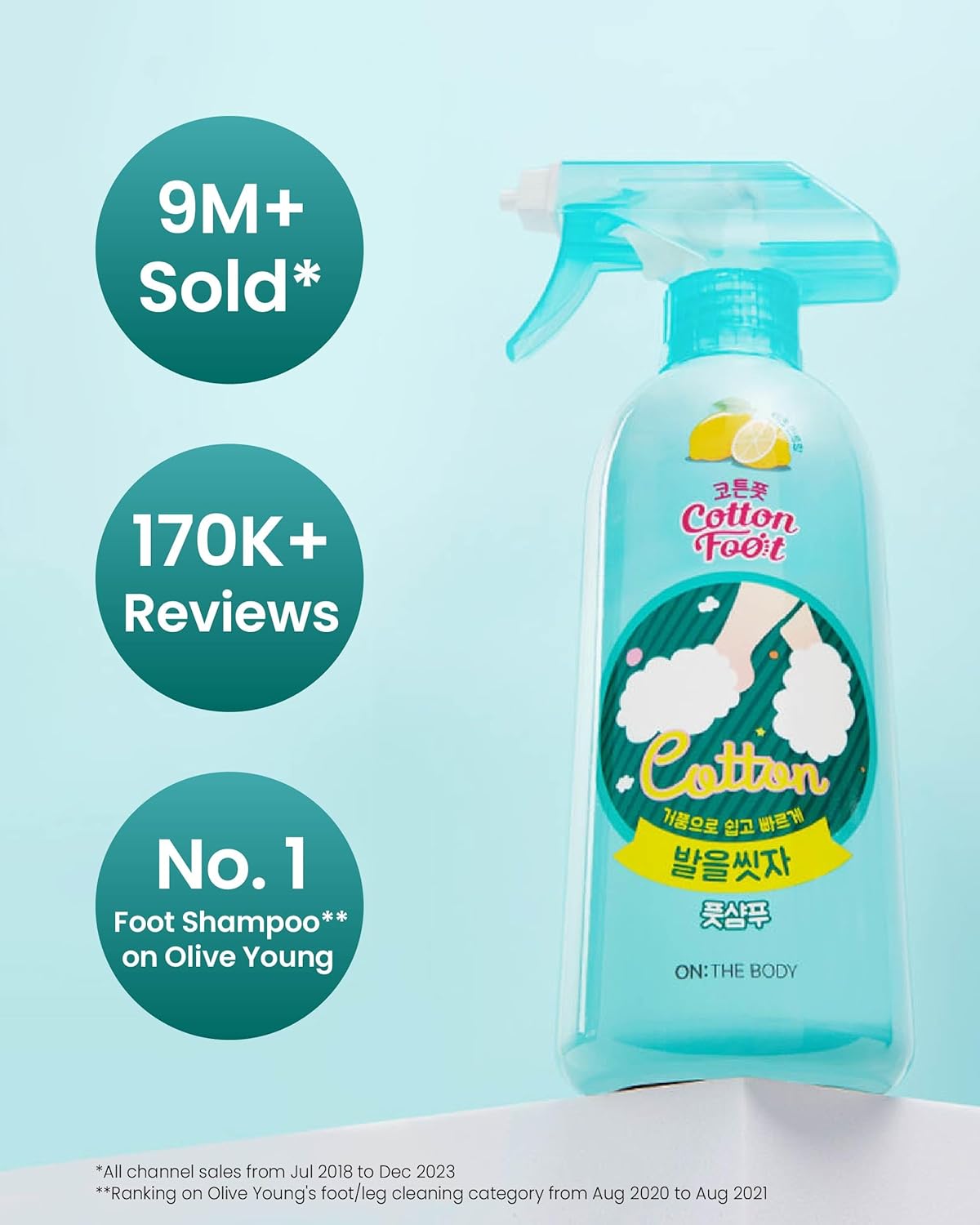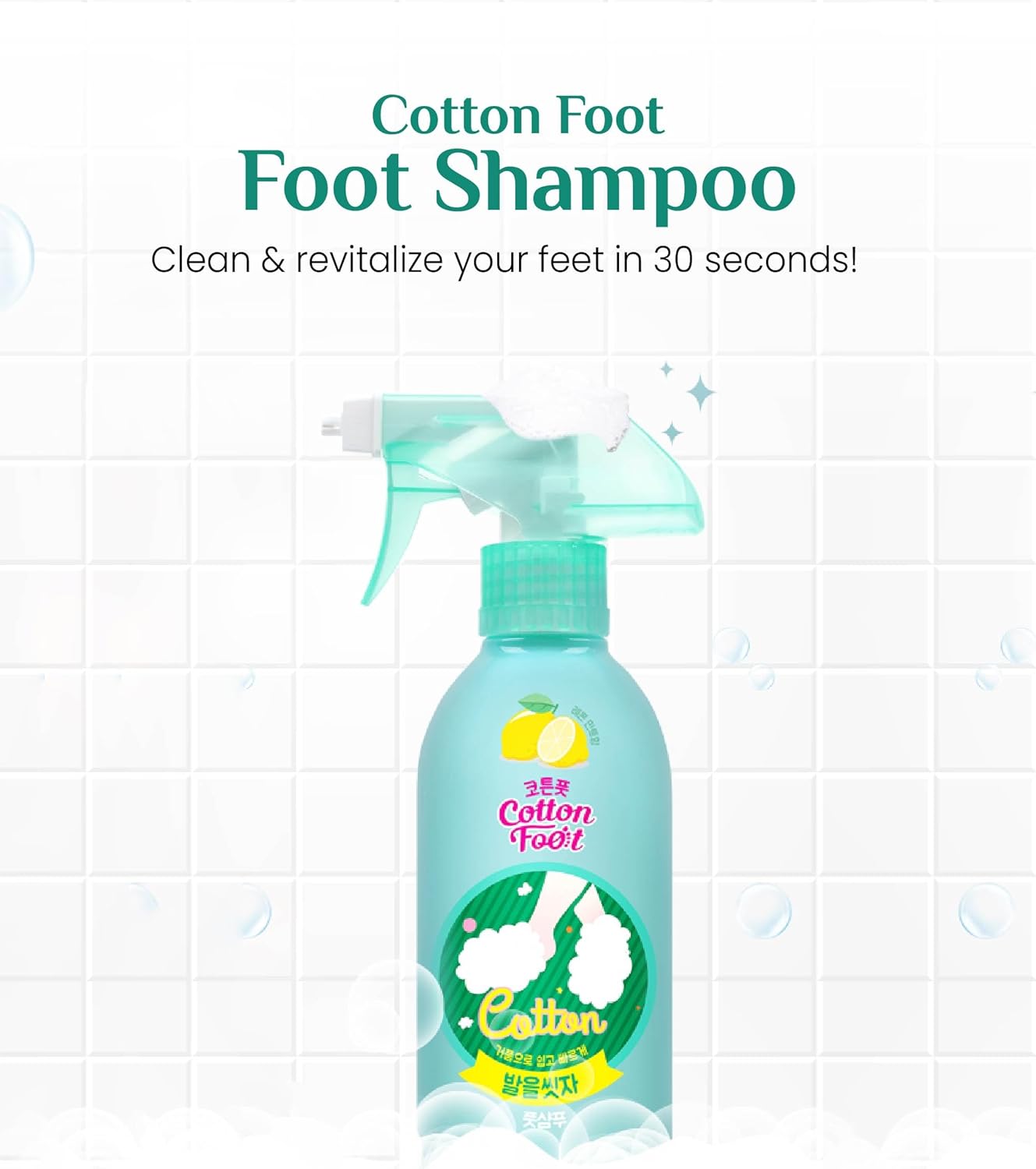 Cotton Foot – Foot Shampoo (Lemon, 13fl oz) – Refreshing Cleanse Spray, Deodorizing Foot Care Wash. Foaming Wash, Easy to Use.
