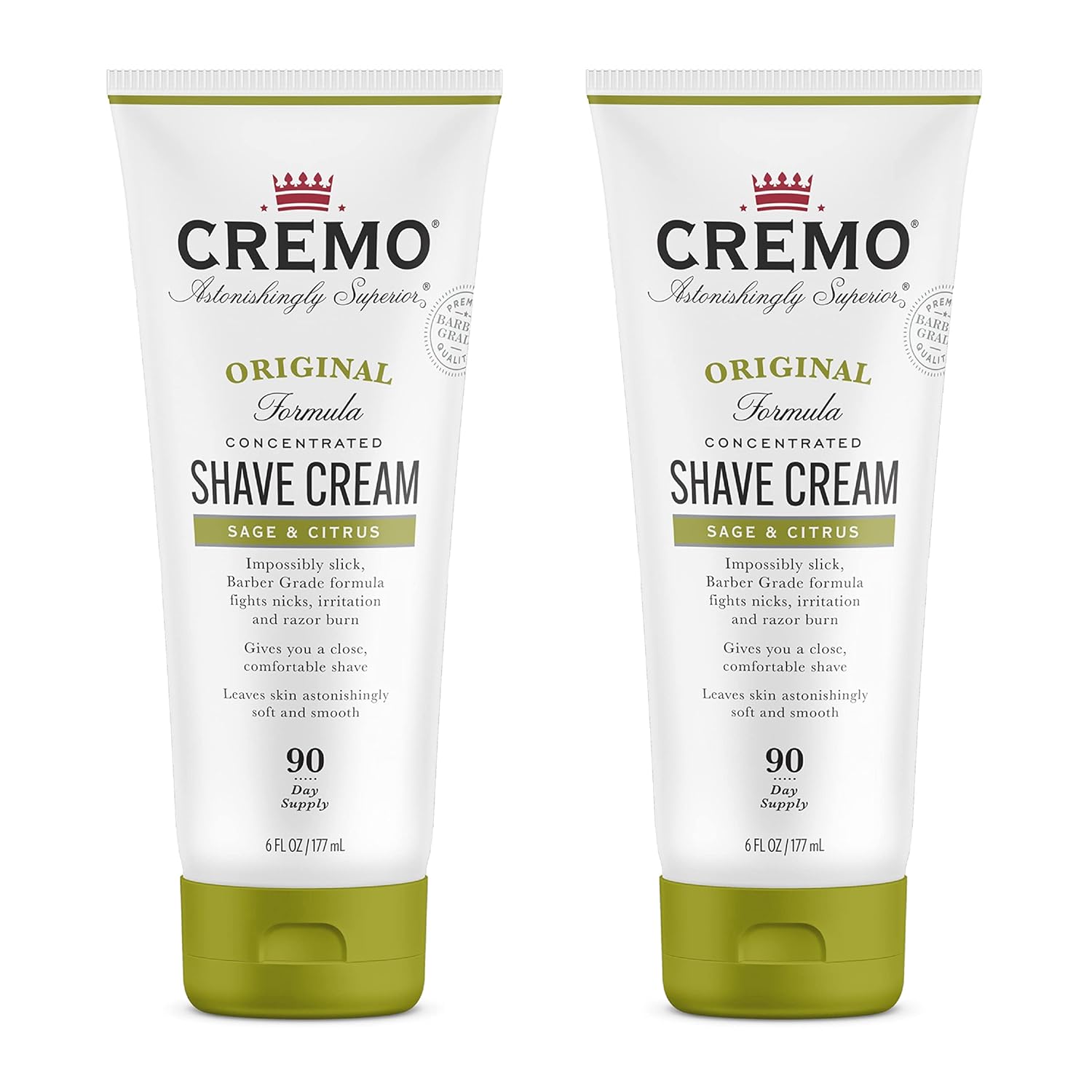 Style Name:Sage & Citrus | Size:2 Count Our ultra-slick original formula combined with our exceptional crisp Sage and Citrus scent, inspired by the Pacific Coast.Cremo is an exceptional shave cream. Why? Many shave “creams” and gels are foamy formulas full of air – not the best lubricant. Cremo requires one unusually thin, foam-free layer. It’s concentrated against your skin, not in a cloud that gets scraped down the drain. Cremo contains unique molecules that become impossibly slick when mixed with water, so your blade can glide effortlessly over skin. You’ll enjoy a clean, comfortable shave and astonishingly smooth skin while fighting nicks, razor burn and irritation.