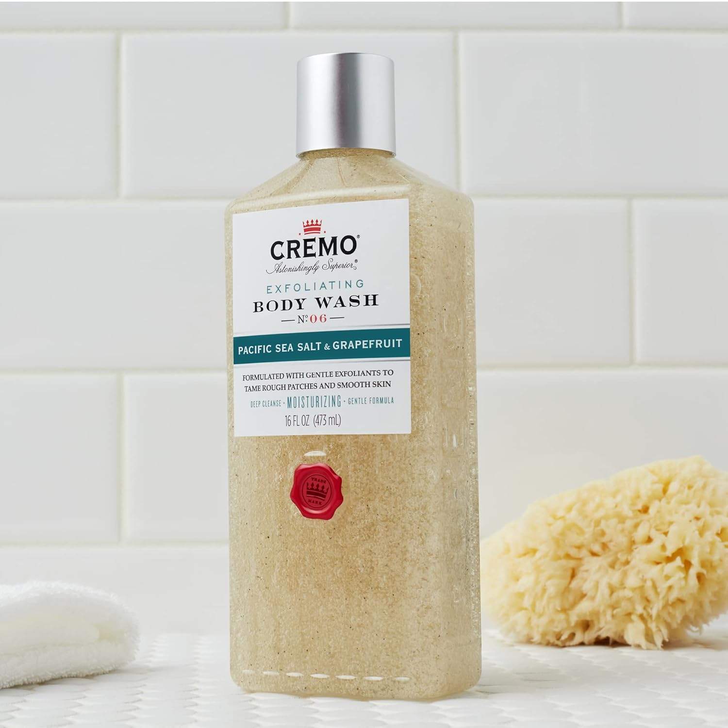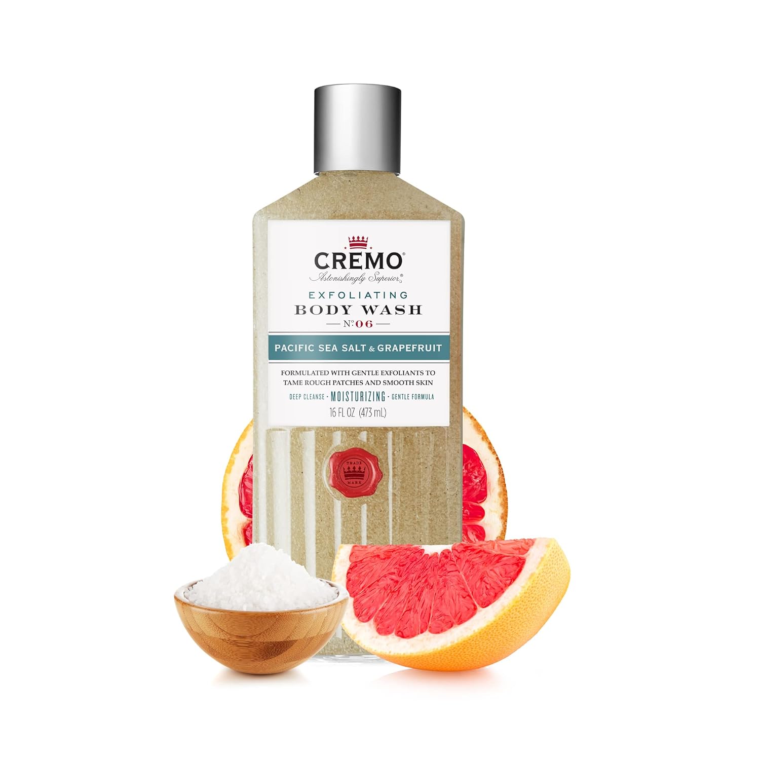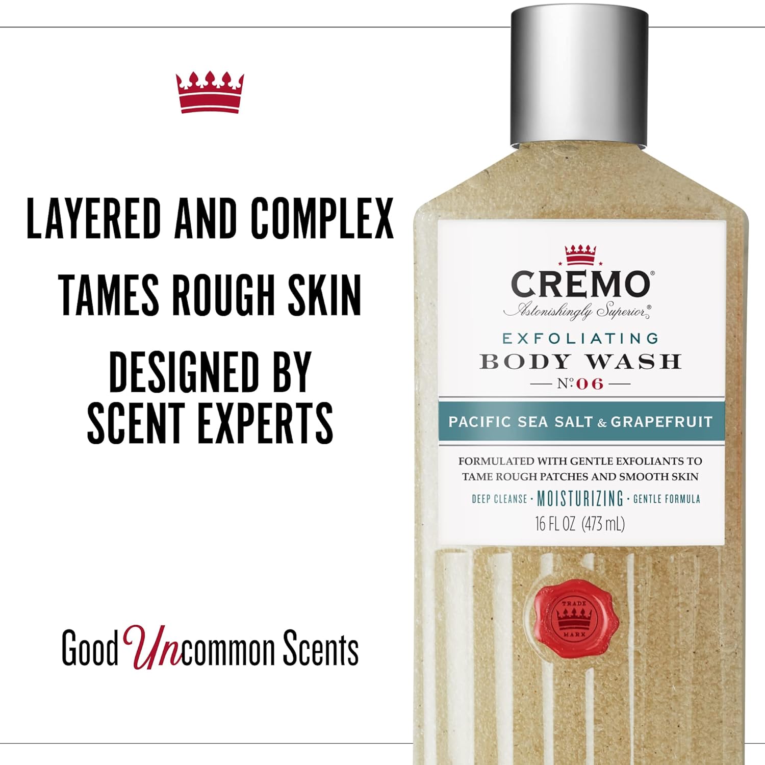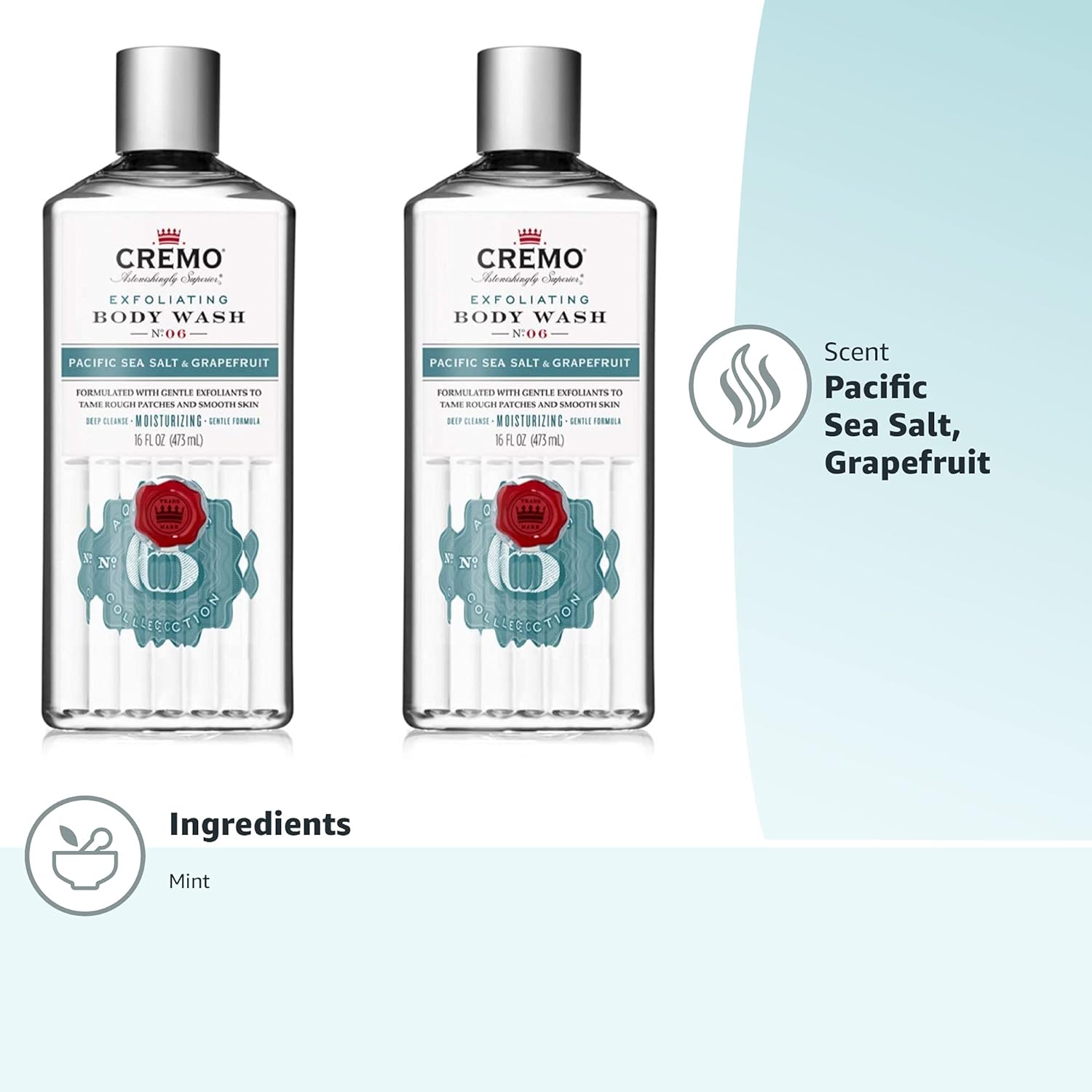 Cremo Exfoliating Pacific Sea Salt & Grapefruit Body Wash, A Refreshing Scent with Notes of Fresh Mint, Citron, Cedar and Moss, 16 Fl Oz (2-Pack)