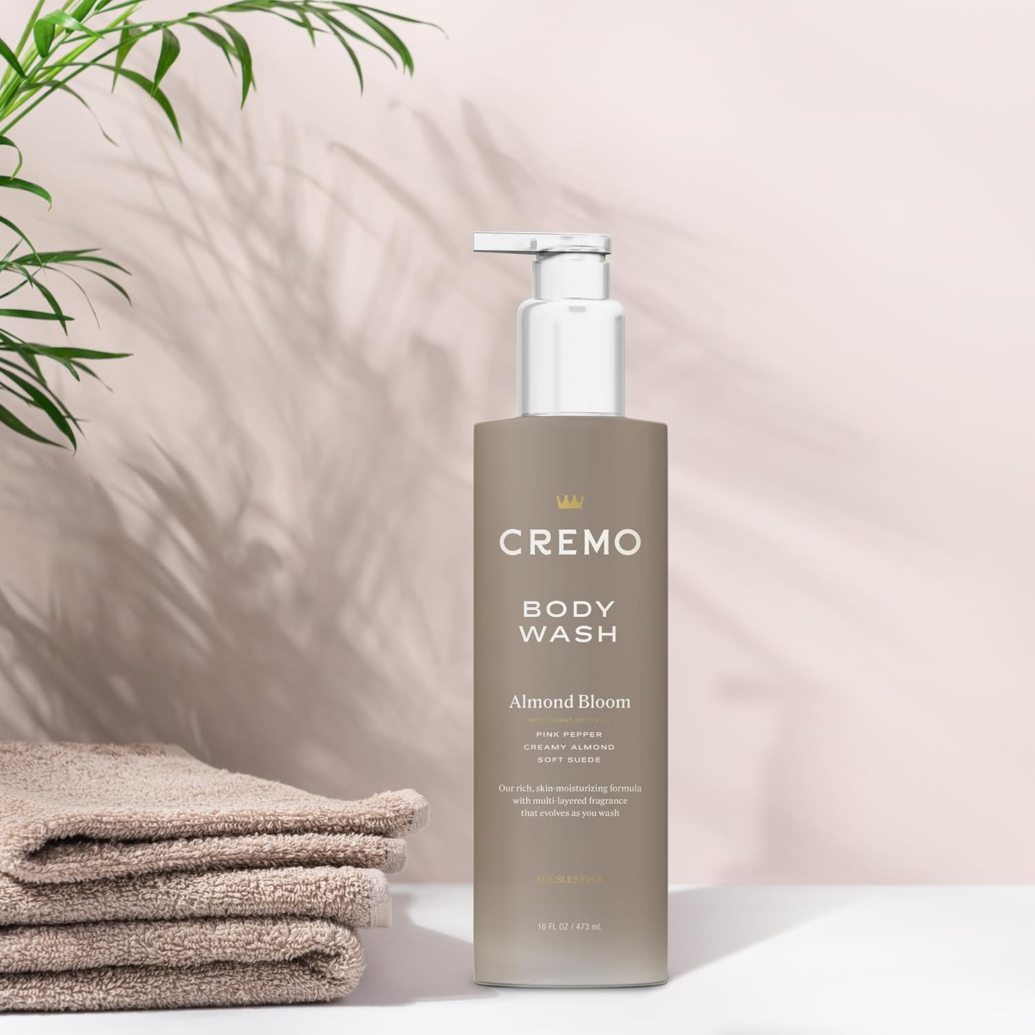 Cremo Skin Moisturizing Almond Bloom Women’s Body Wash, Notes of Spicy Pink Pepper, Creamy Almond, and Soft Suede, 16 Fl Oz