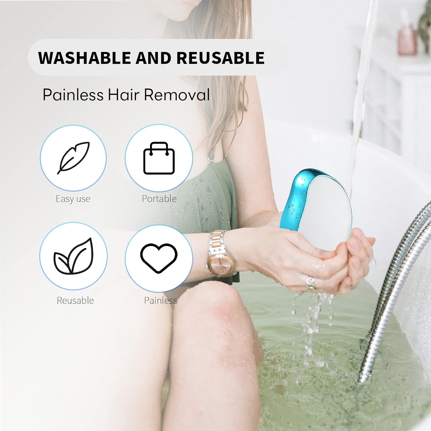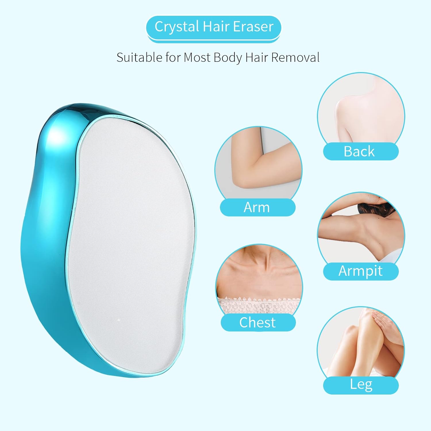Crystal Hair Eraser Hair Removal for Women Men Arms Legs Back Upgraded Nano Glass Painless Physical Hair Removal Tool (Sky Blue)