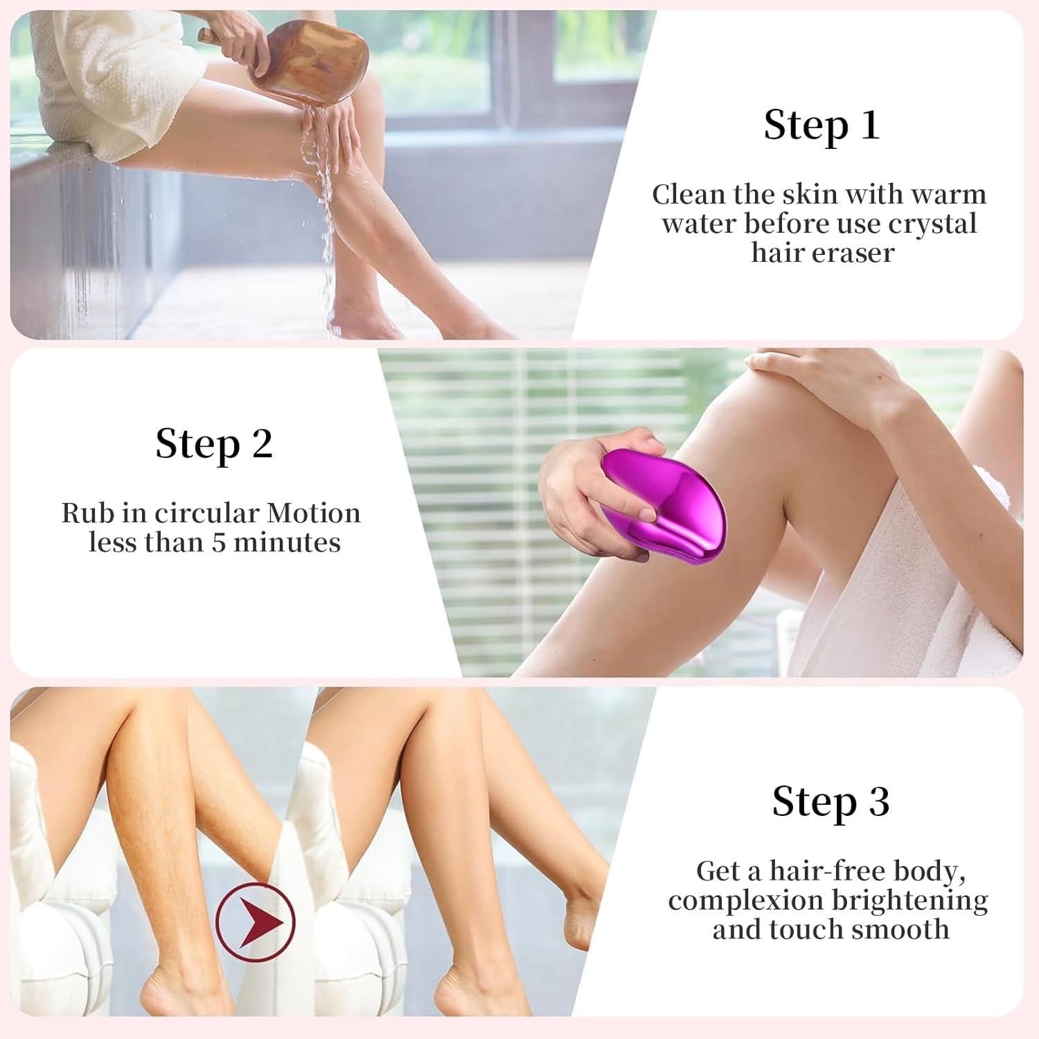 Crystal Hair Remover,Crystal Hair Eraser for Women and Men,Magic Hair Eraser for Back Arms Legs,Painless Exfoliation Hair Removal,Reusable, Washable Hair Remover (Upgrade Glossy Rose)