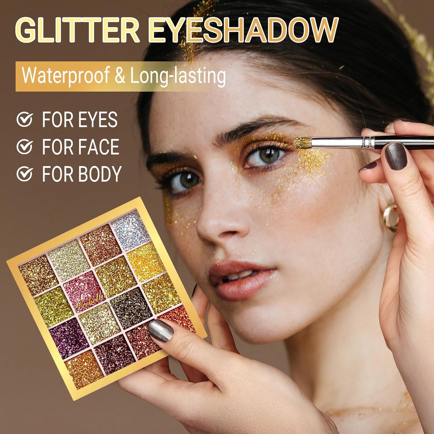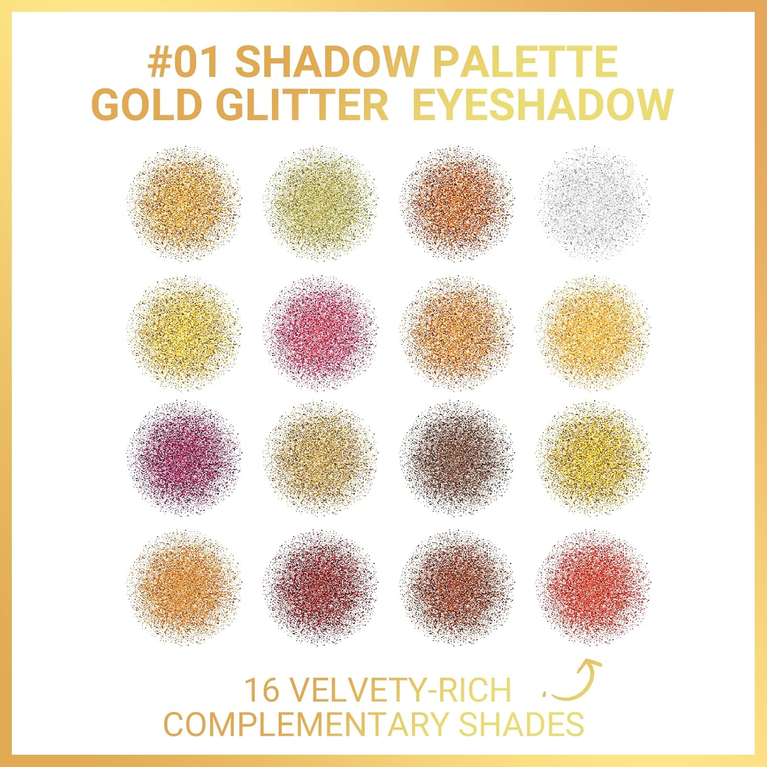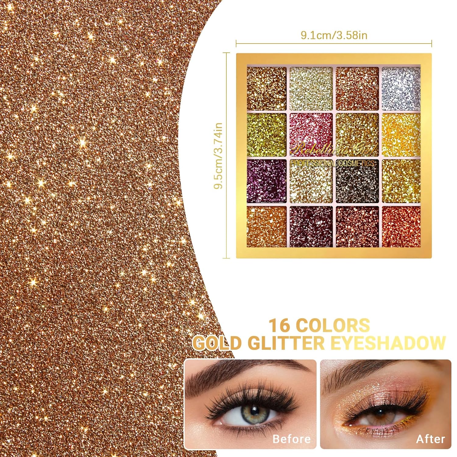 DAGEDA Gold Glitter Eyeshadow Palette,16 Colors Highly Pigmented Eye Shadow,Long Lasting Sparkle Pressed Powder Eye Makeup,Smooth and Shimmer Eye Glitter Makeup Palette