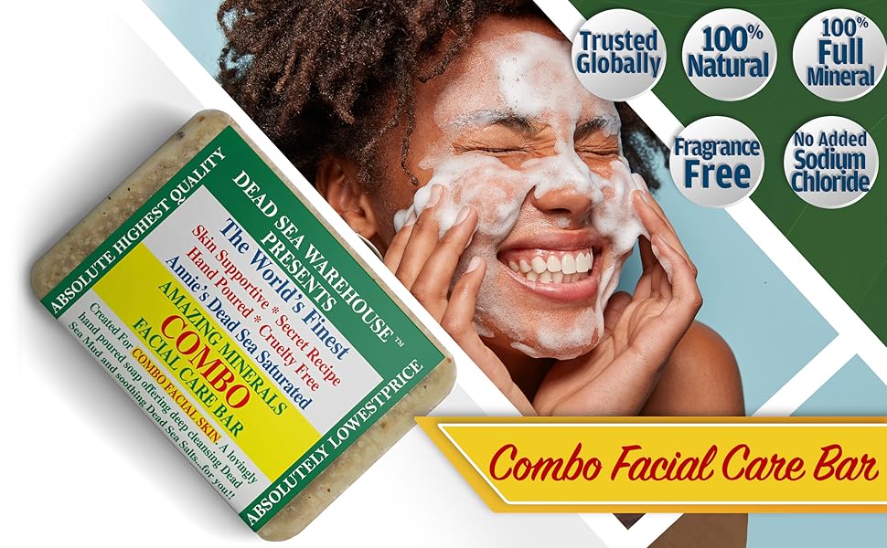 THE MAGIC IS IN THE MINERALS: Our COMBO Facial Care Bars are SATURATED—not sprinkled—with beneficial Dead Sea minerals that cleanse & care for your combination skin. Dead Sea minerals have been used for centuries to improve skincare.*